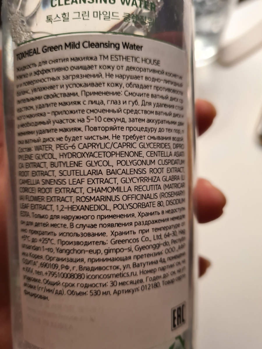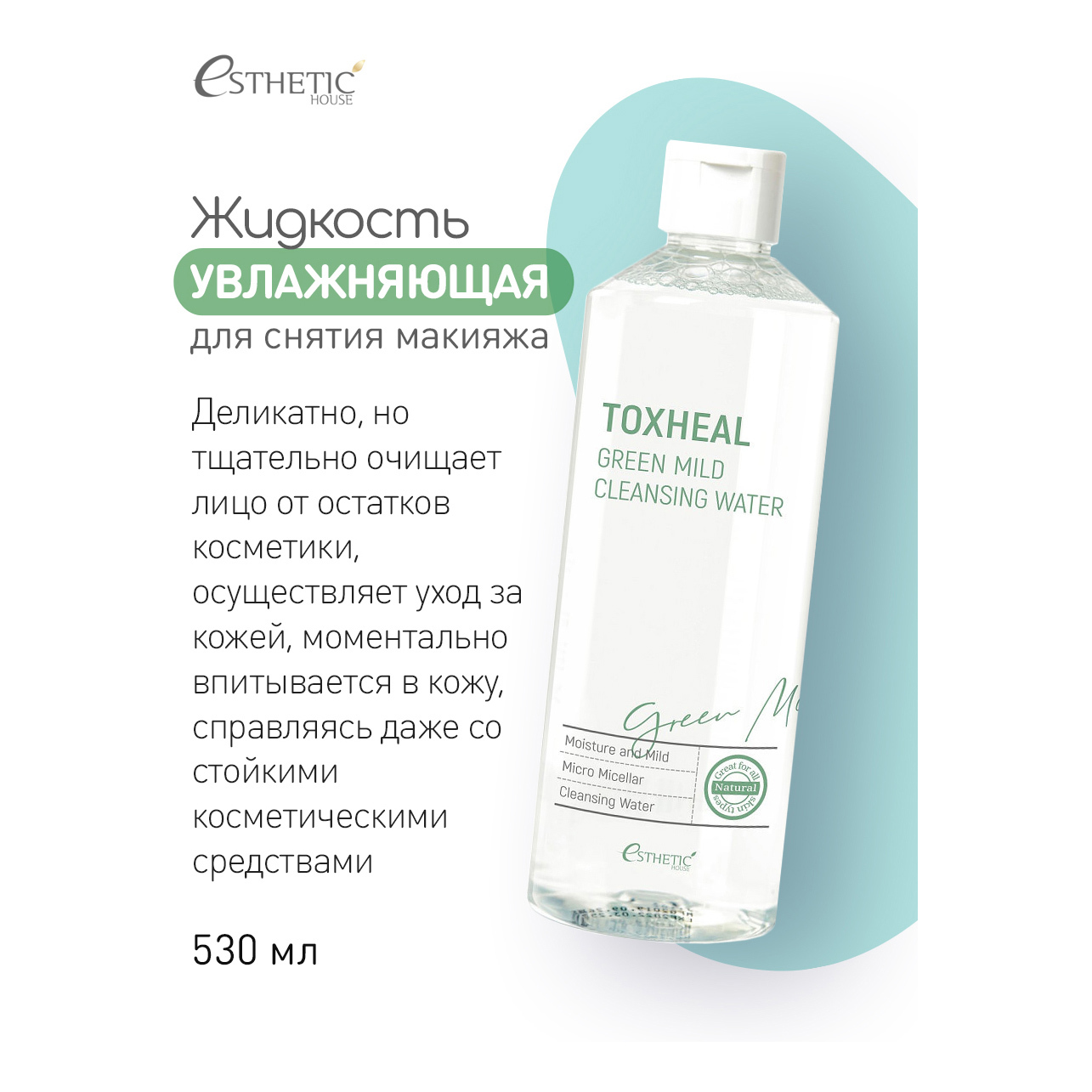 ESTHETIC HOUSE Увлажняющее средство для снятия макияжа, Корея, Toxheal Green Mild Cleansing Water, очищающая жидкость- 530 мл