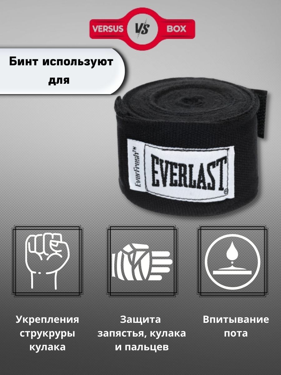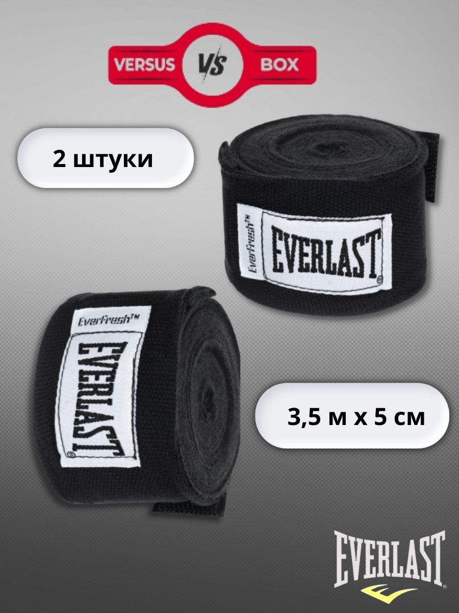 Бинты Everlast черные 3,5 метра, для бокса 2 шт., тренировочные для боксерских перчаток