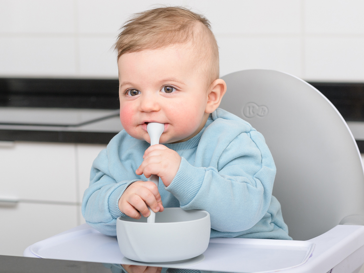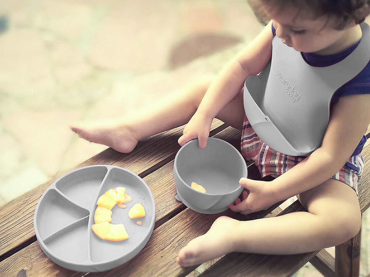 Детская силиконовая глубокая тарелка на присоске EveryDay Baby, серый