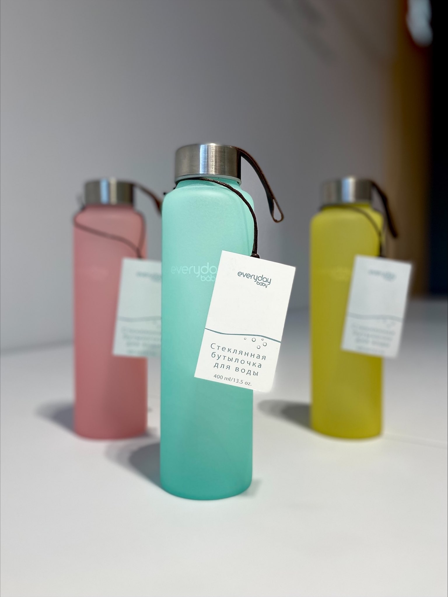 Стеклянная бутылочка для воды Everyday Baby с защитным силиконовым покрытием, 400 мл, мятный