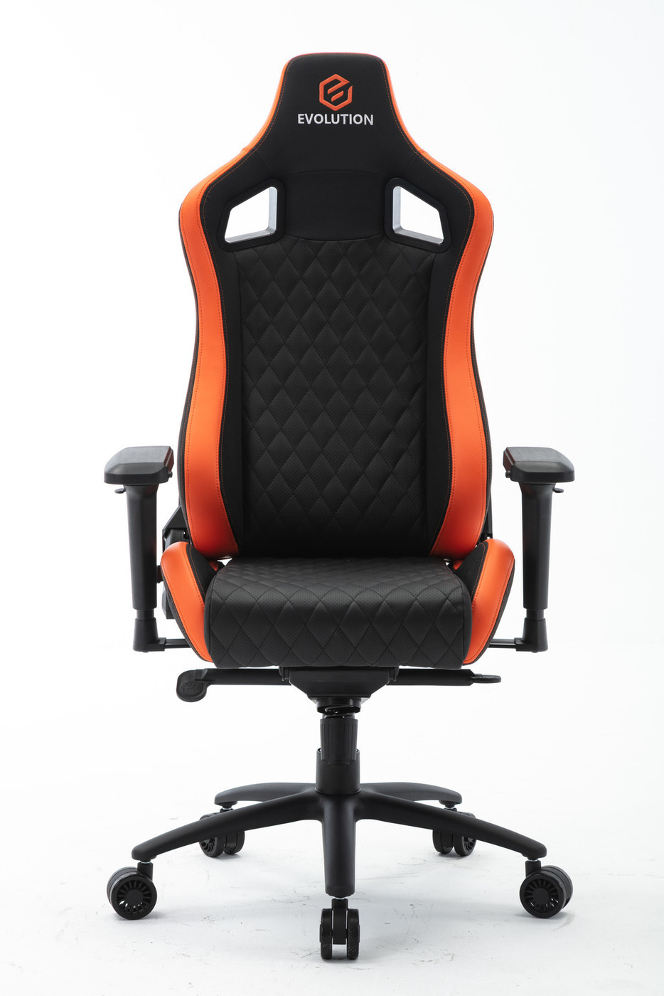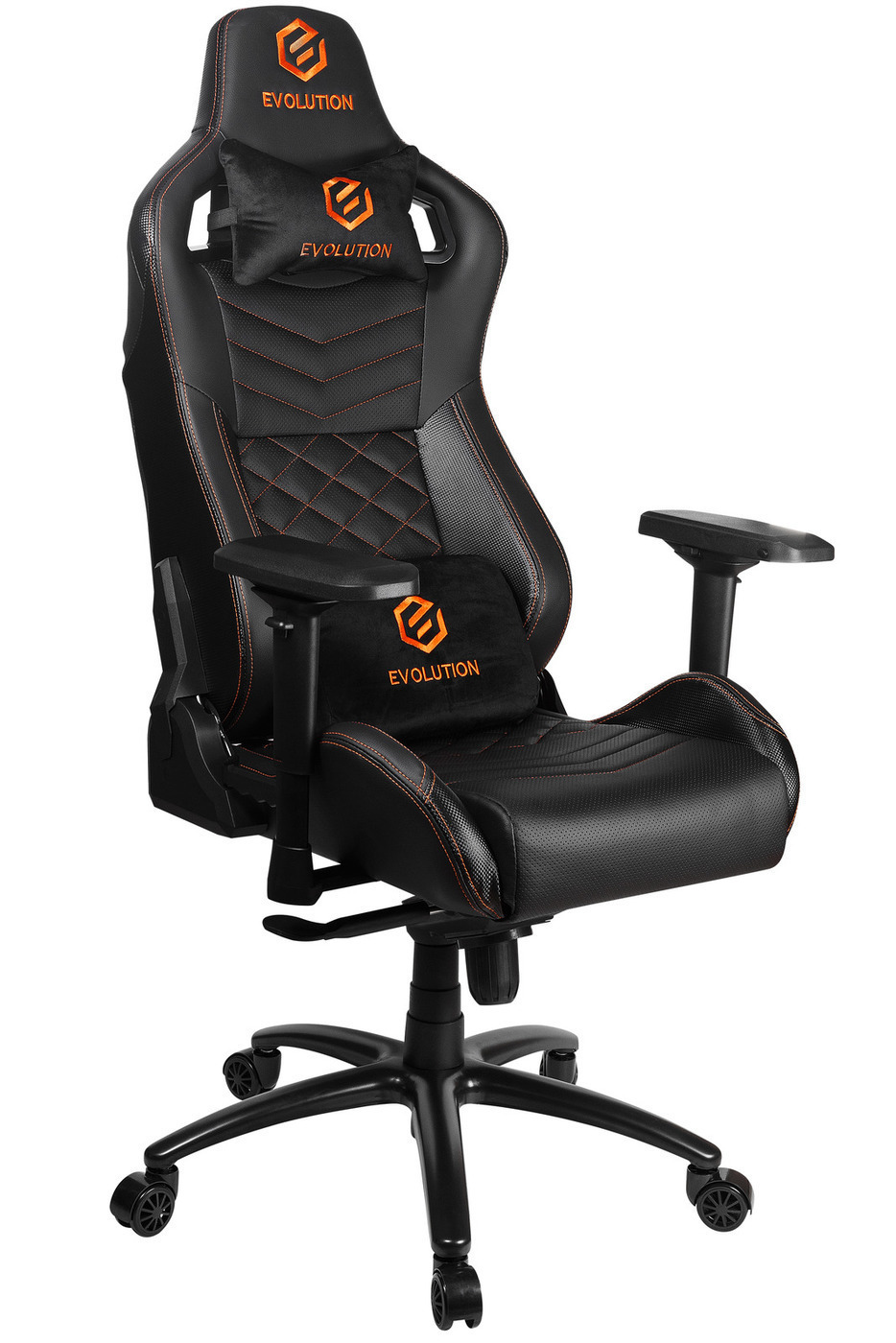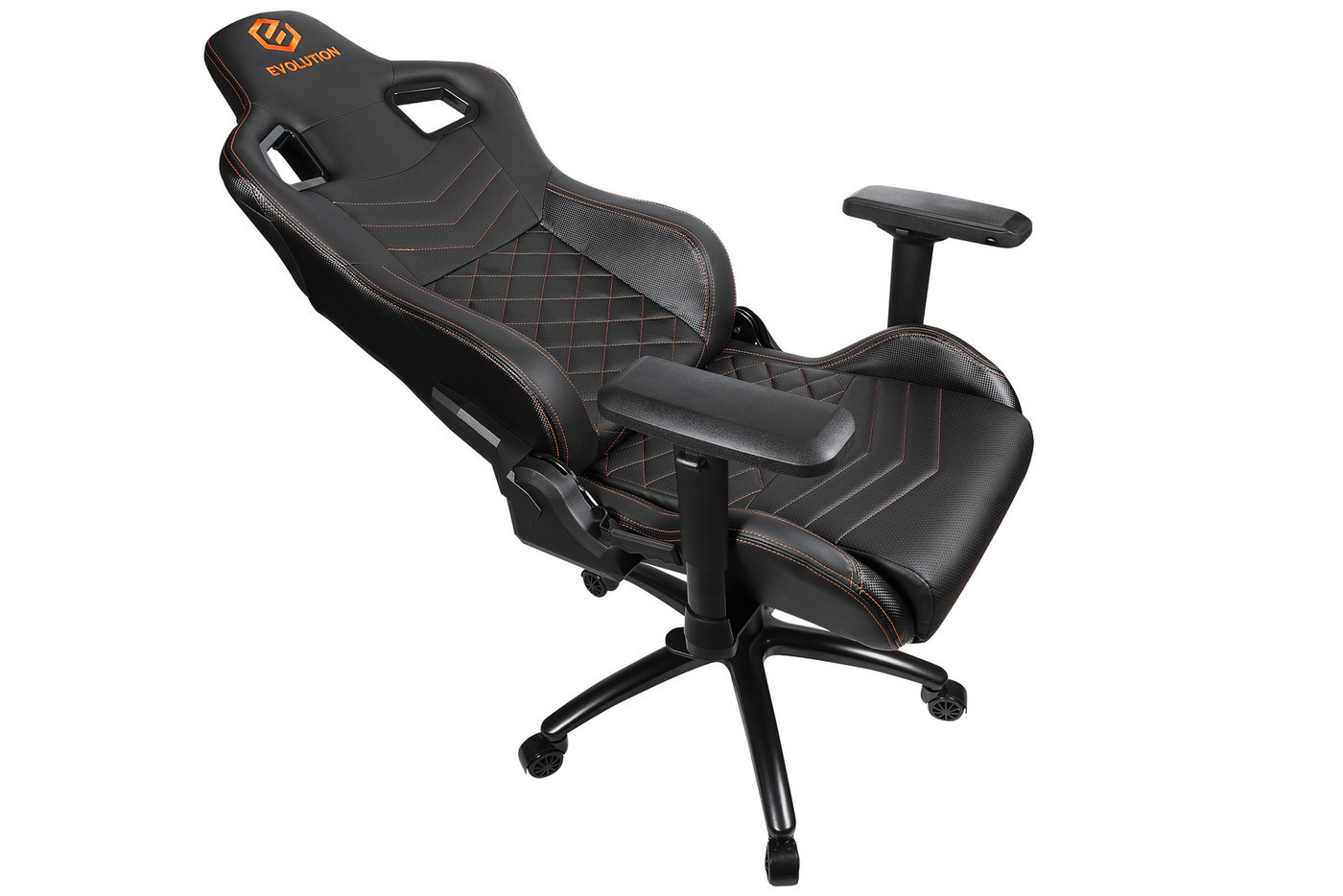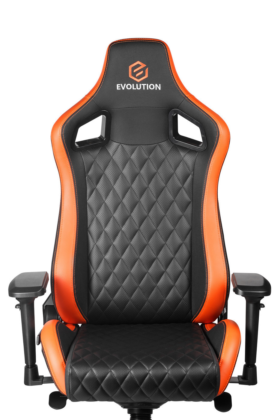 Игровое компьютерное кресло Evolution OMEGA, Перфорированная экокожа, черный, оранжевый