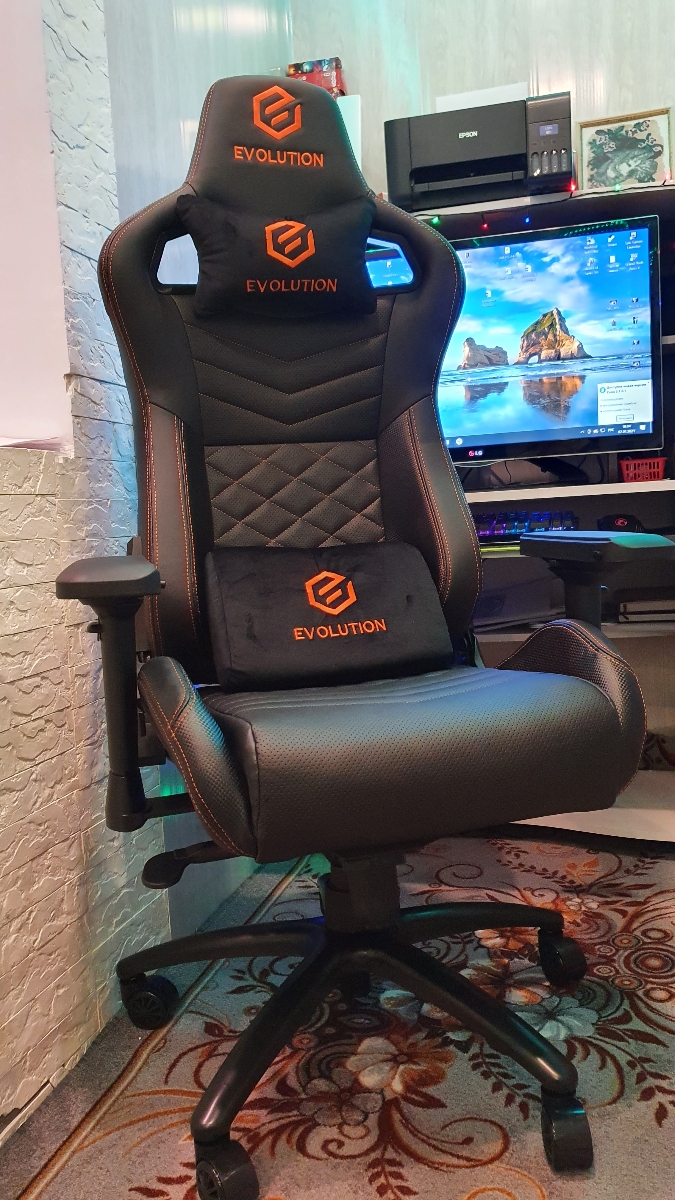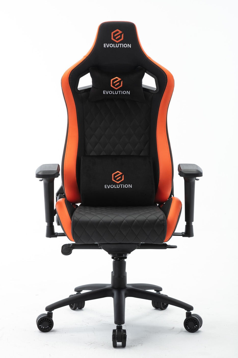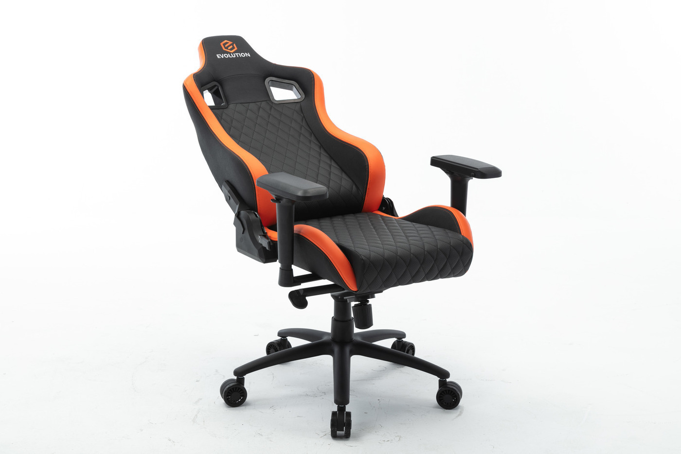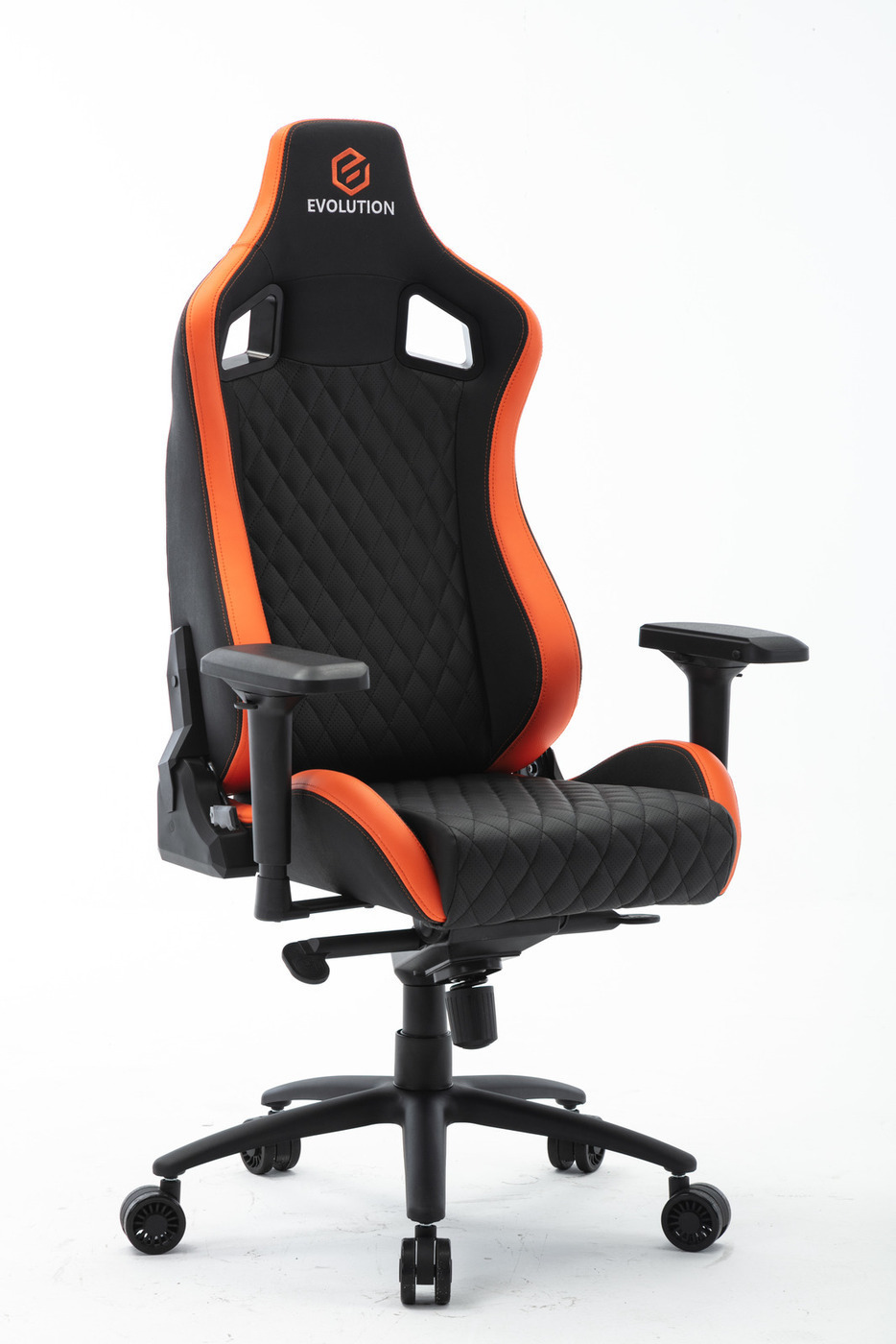 Игровое компьютерное кресло Evolution OMEGA, Перфорированная экокожа, черный, оранжевый