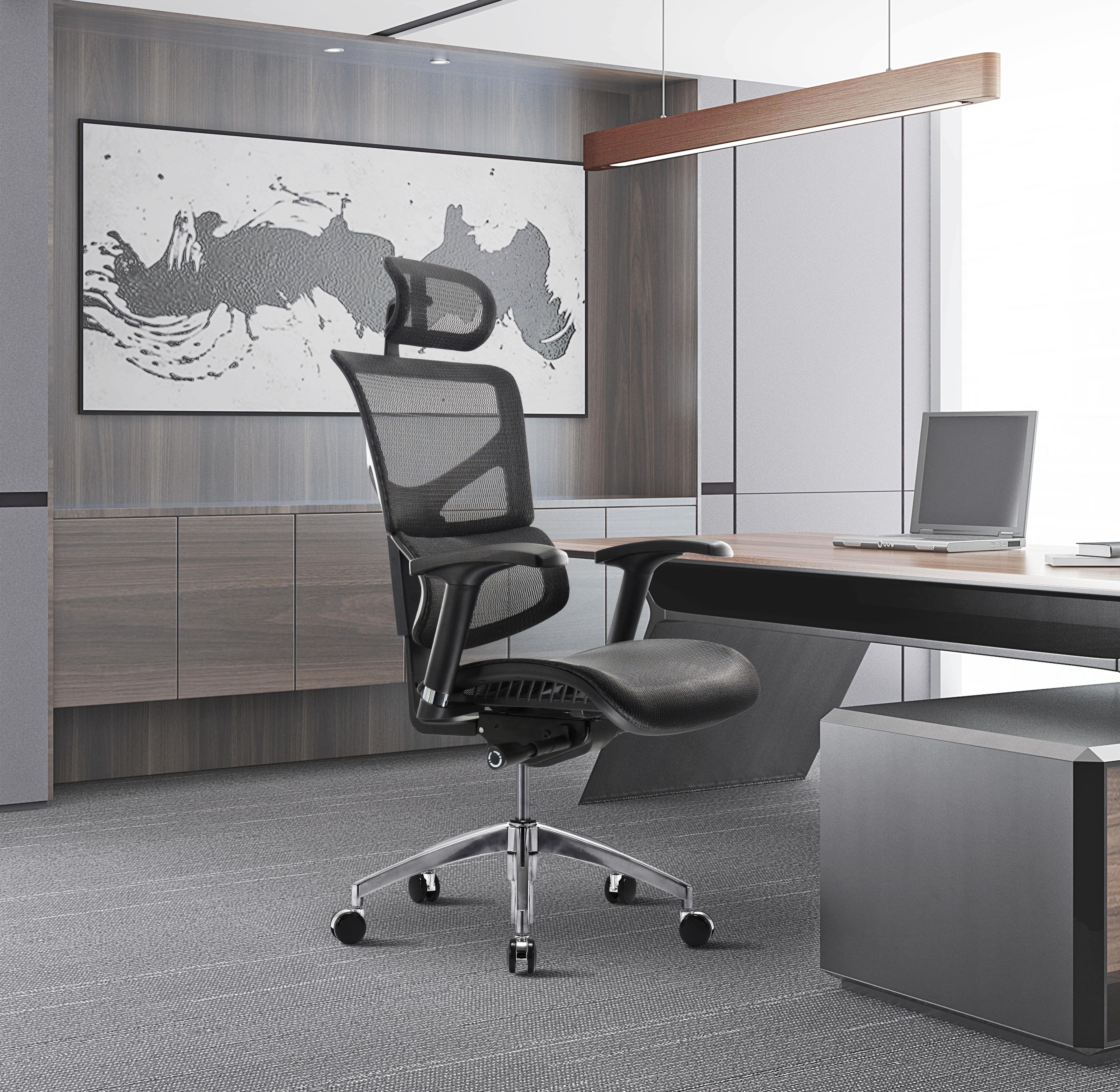 Кресло руководителя, Офисное кресло Evolution Model F, Синтетическая дышащая сетка, Ткань, черный