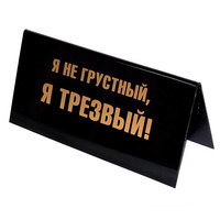 Табличка на стол "Я не грустный, я трезвый/Лучше маленький доллар, чем большое спасибо"