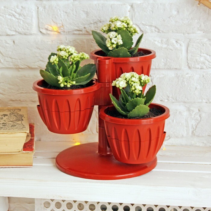 Кашпо многоярусное "Каскад", 3 шт, 700 мл, цвет терракотовый Кашпо для цветов / Горшок для цветов /