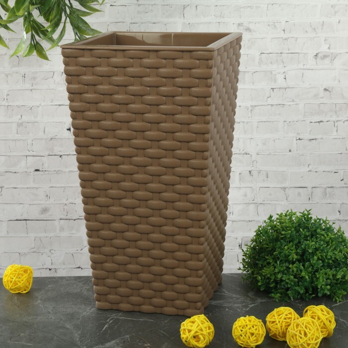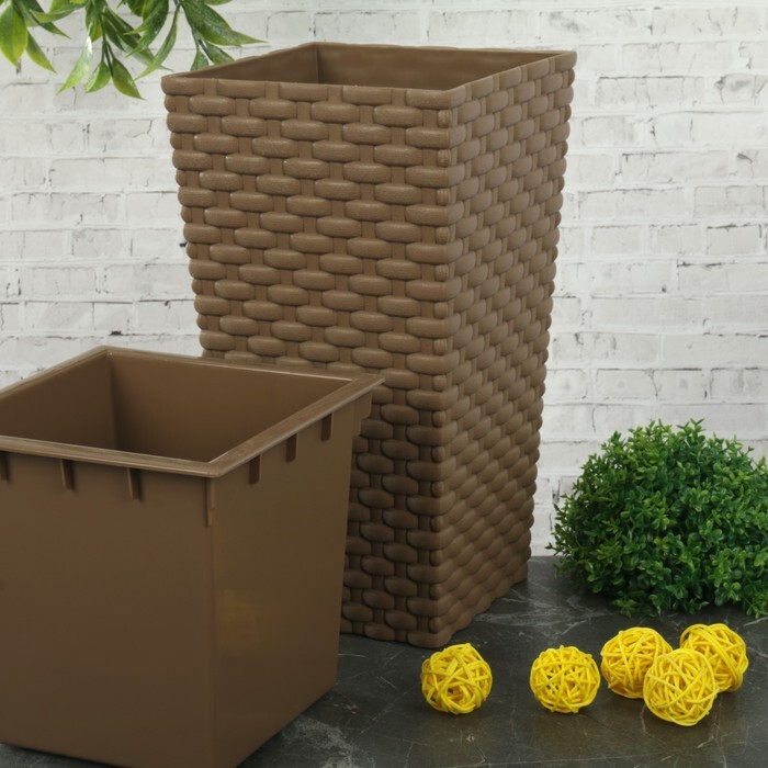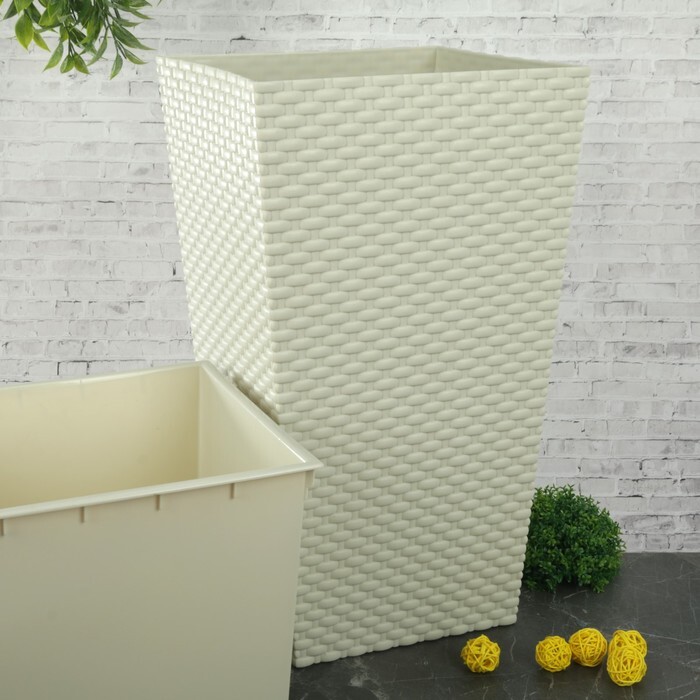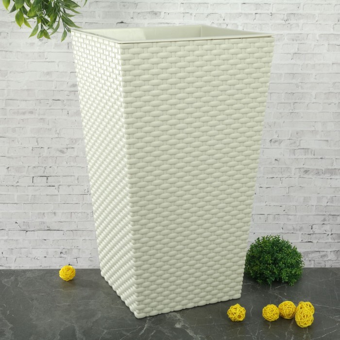 Кашпо со вставкой "Ротанг", 21 л (11,2 л), цвет белый Кашпо для цветов / Горшок для цветов /