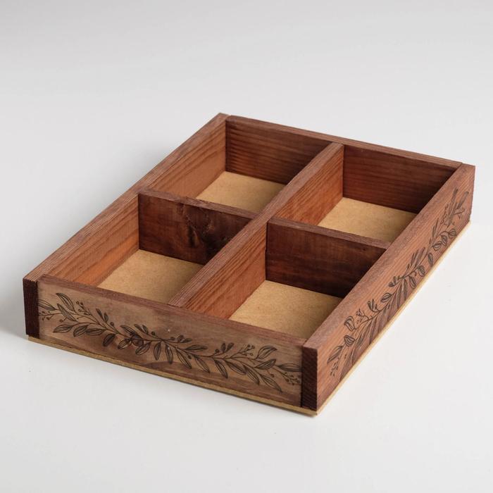 Ящик-кашпо подарочный "Веточки", 4 ячейки, 27,5 х 20 х 4,5 см Кашпо для цветов / Горшок для цветов /