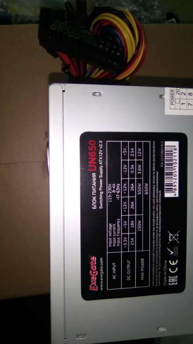 Блок питания 650W Exegate UN650, ATX, 12cm fan, 24p+4p, 6/8p PCI-E, 3*SATA, 2*IDE, FDD