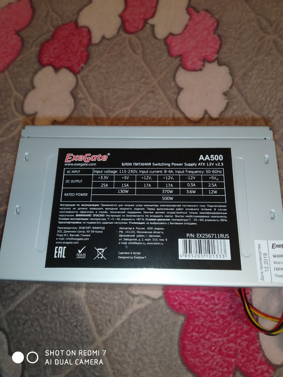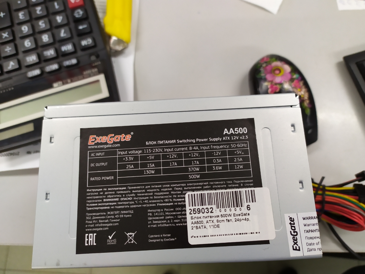 Блок питания 500W Exegate AA500, ATX, 8cm fan, 24p+4p, 2*SATA, 1*IDE