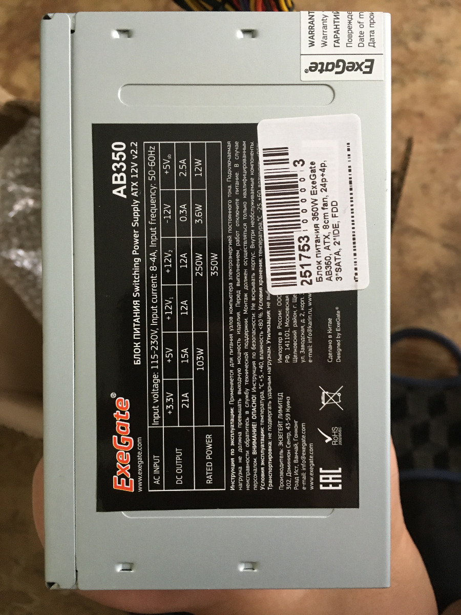 БП 350W Exegate AB350, ATX, 8cm fan, 24p+4p, 3*SATA, 2*IDE, FDD