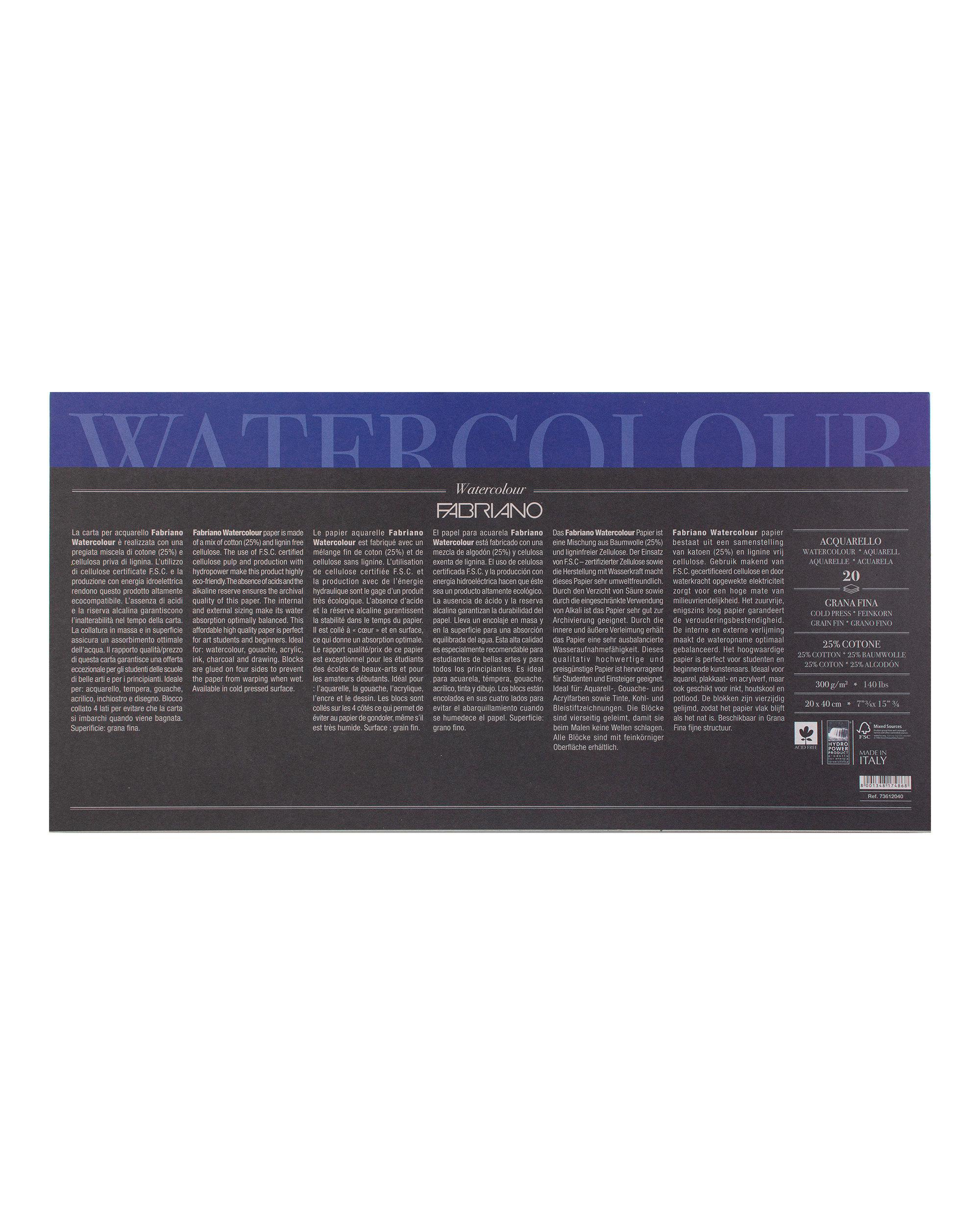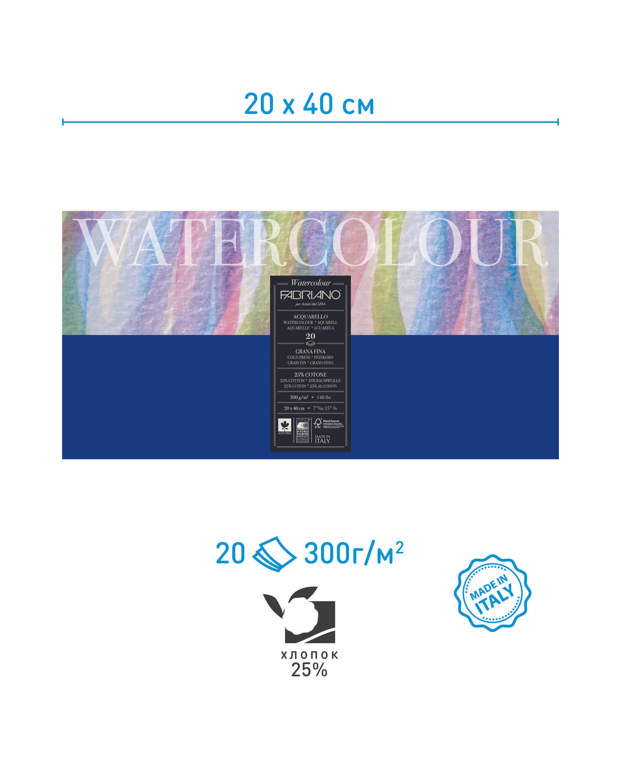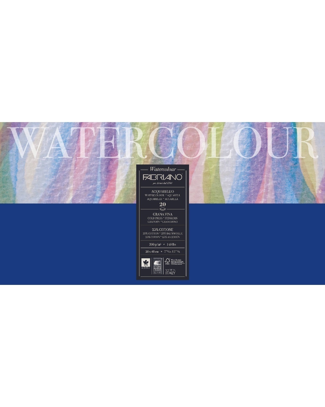 Блок для акварели Fabriano Watercolour Studio, 30х40 см, 300г/м2, 20 листов, фин, склейка 4 сторон