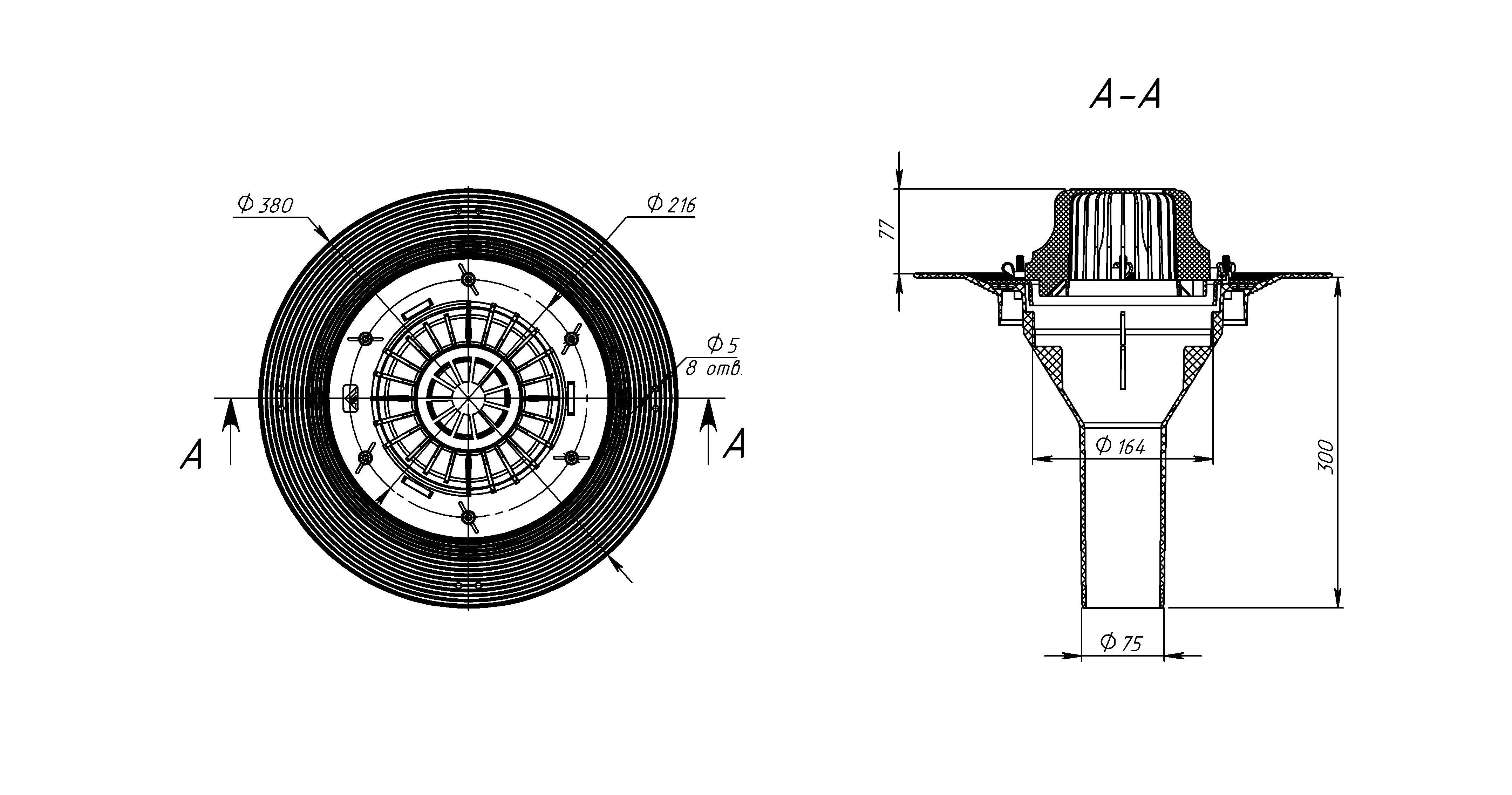 Воронка битумная с закладным элементом без обогрева, VMPro 75x300