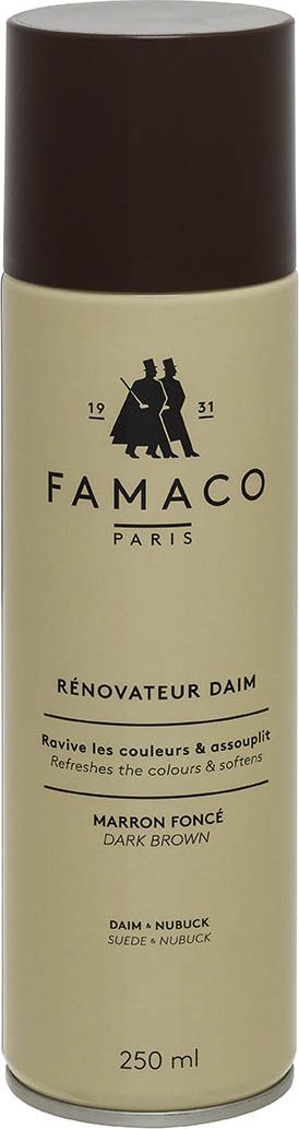 Краска для обуви из нубука,замши и велюра. Восстановитель цвета одежды,(спрей) FAMACO, коричневый, 250 мл