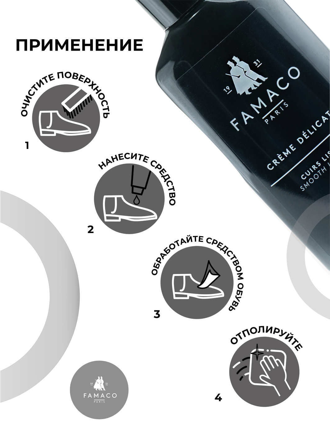 Деликатный крем для обуви, FAMACO, черный, 125 мл
