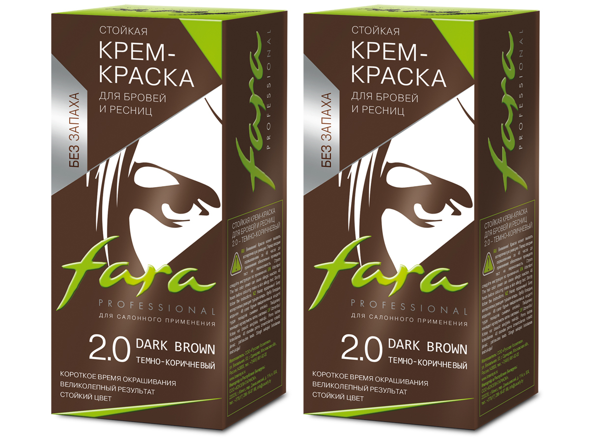 FARA Крем-краска для бровей и ресниц тон 2.0 темно-коричневый, 2 шт.