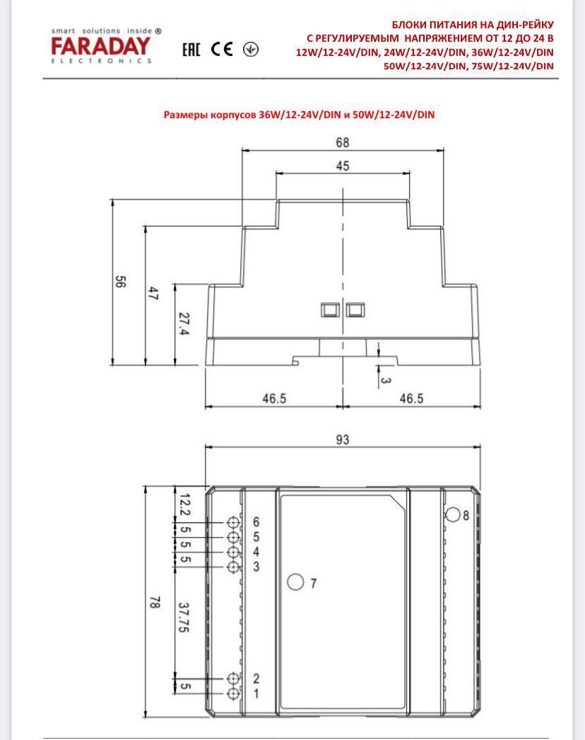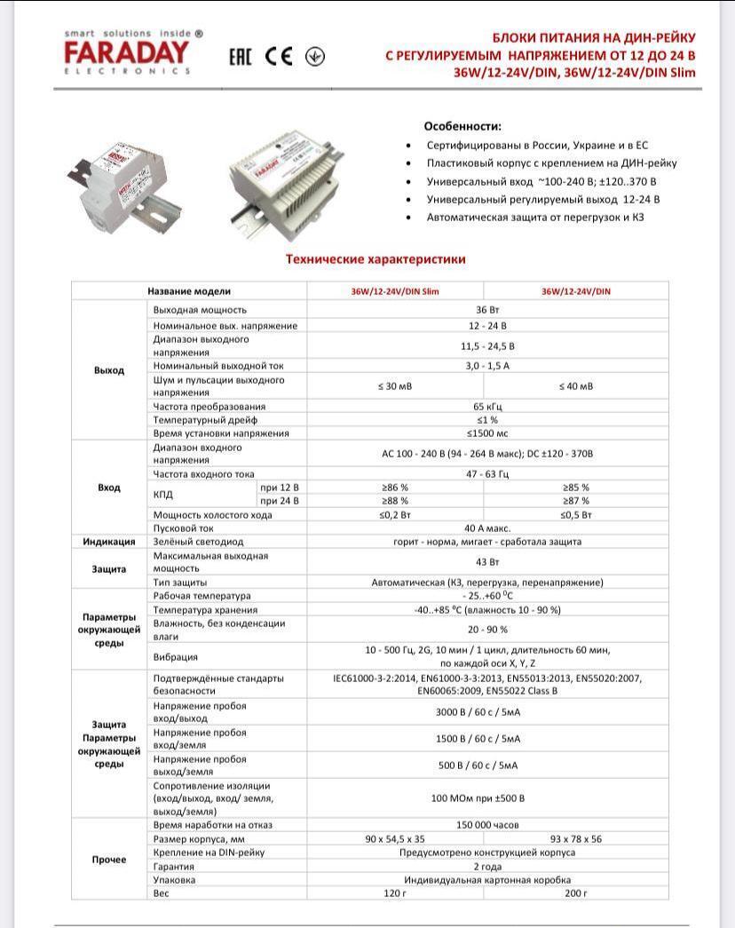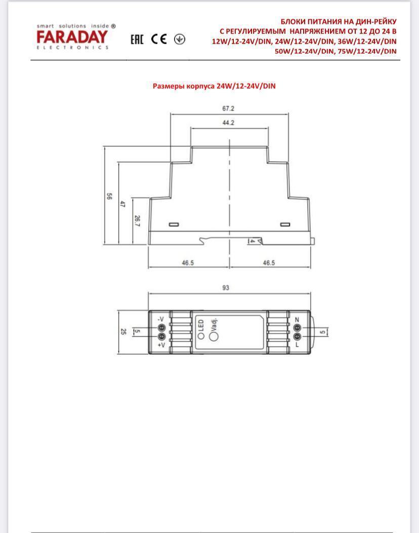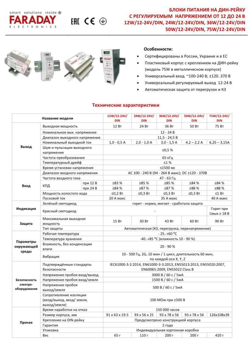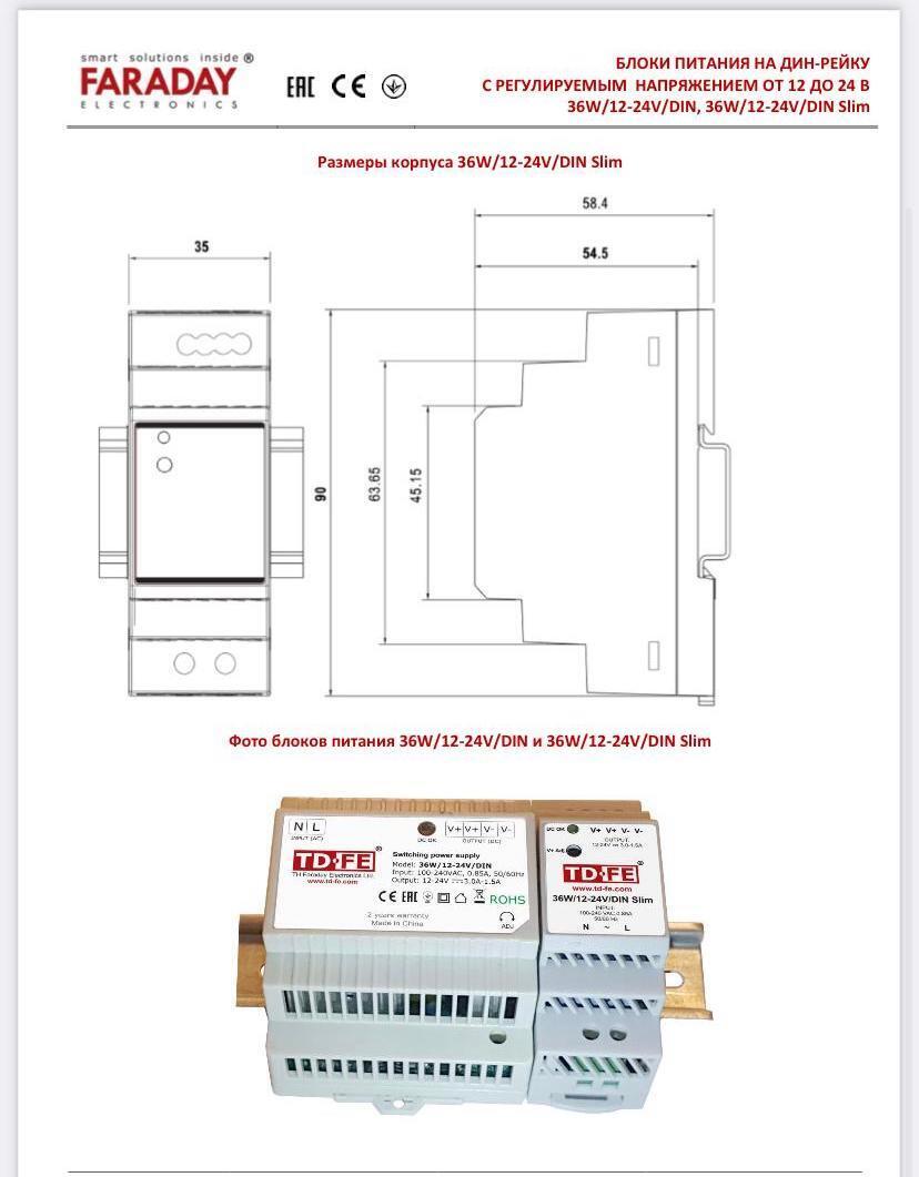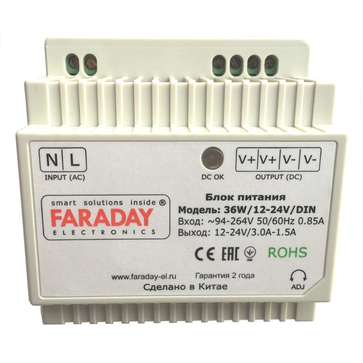 24W/12-24V/DIN импульсный блок питания на DIN-рейку (модульный) Faraday