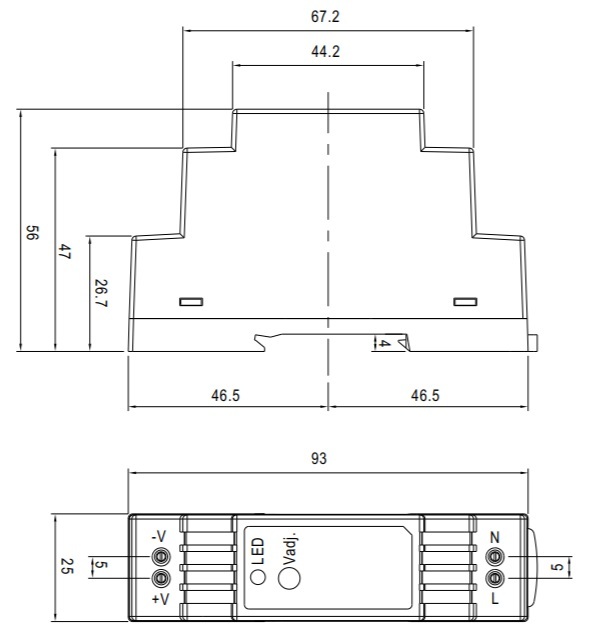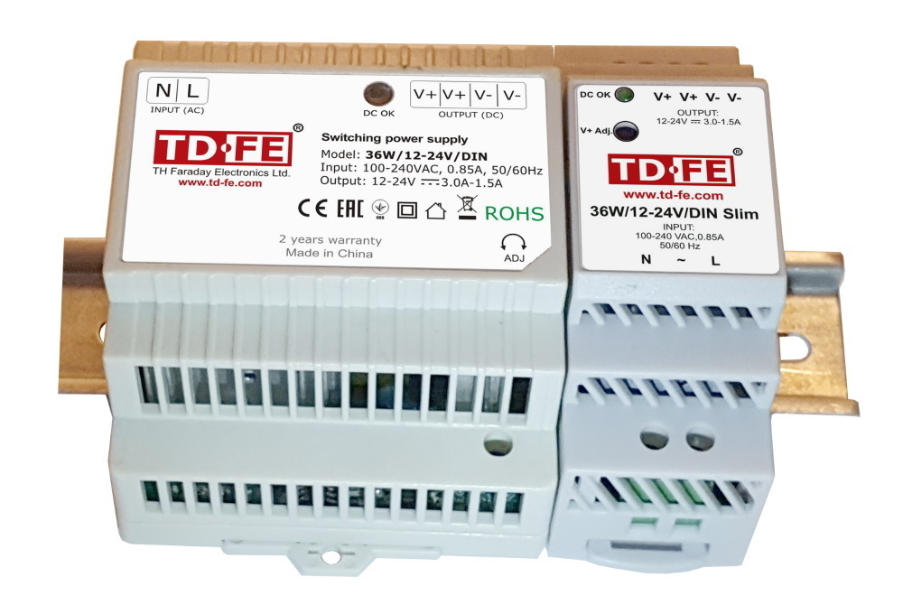 Модульный блок питания на DIN-рейку 36W, в компактном корпусе, 12-24V