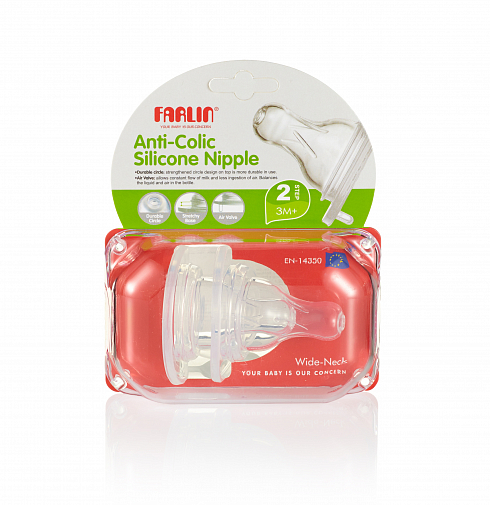 Эластичные силиконовые соски Farlin средний поток на широкое горлышко, 2 шт.
