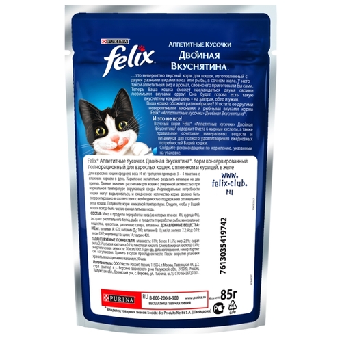 Корм "Felix" Sensations с уткой в желе со шпинатом, 85г
