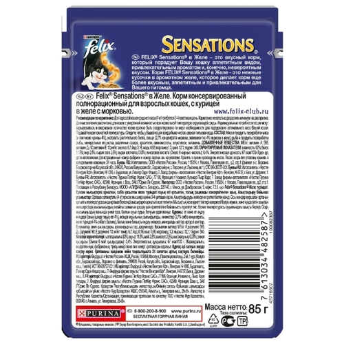 Корм для кошек Felix Sensations с курицей 85 г (кусочки в желе)