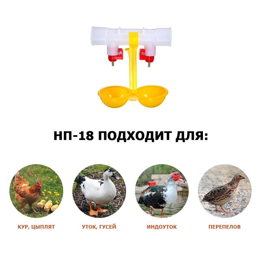 Комплект разборных ниппельных поилок для кур и перепелов НП-34 (10 шт.)