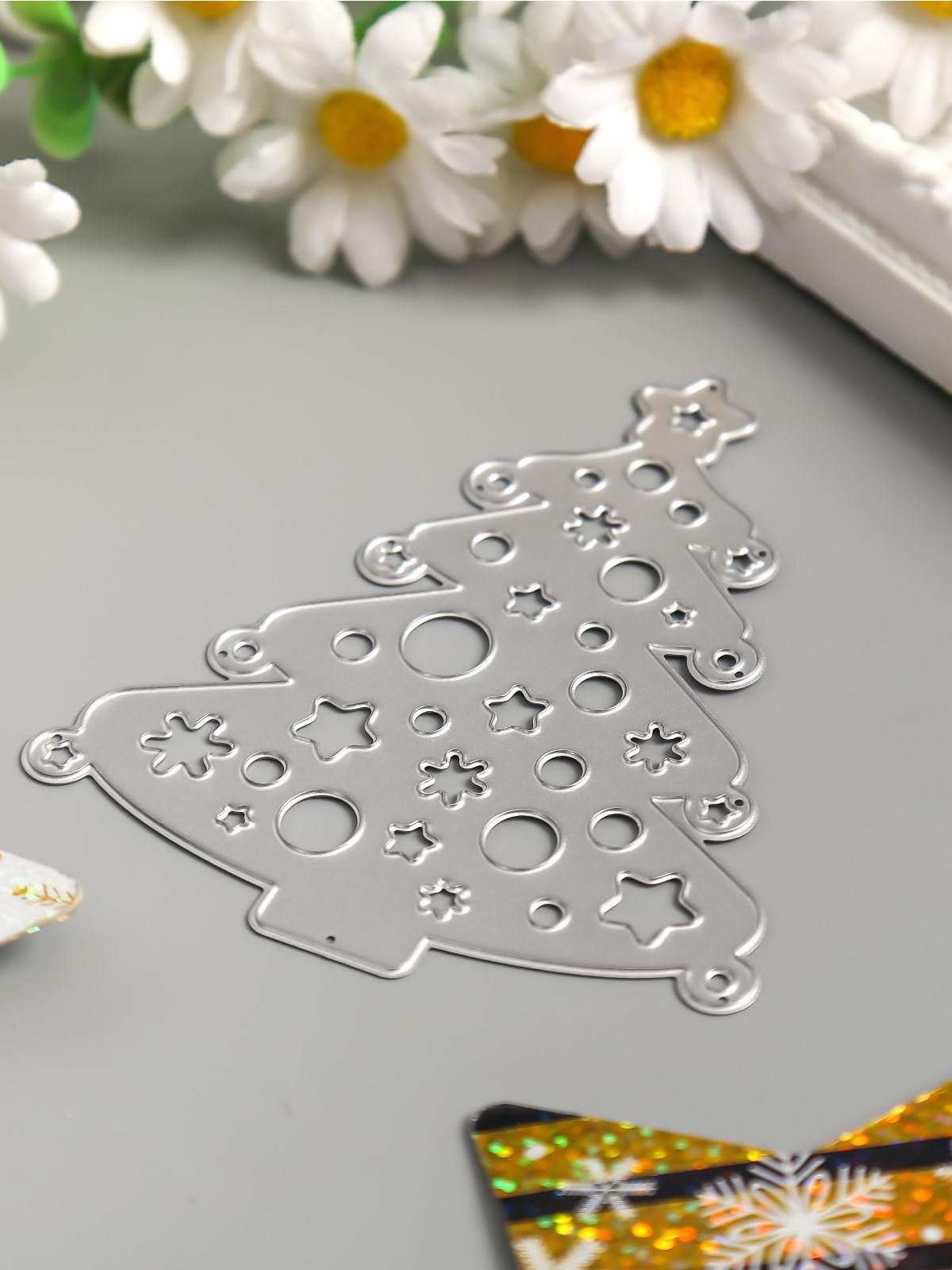 FEYT, Стальной нож для вырубки скрапбукинг "Елочка с огоньками" / Каттер / Новый год 2022