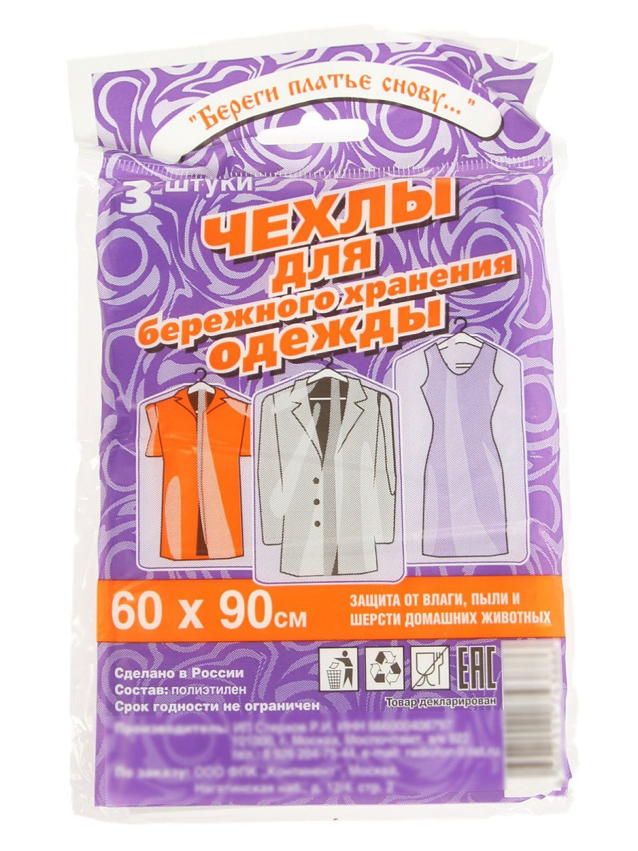 Чехол для одежды FEYT, 90 см х 60 см, 3 шт