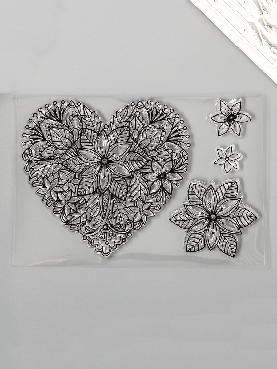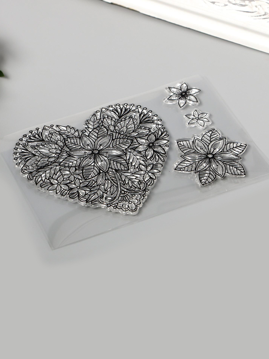 FEYT, Силиконовый штамп для творчества "Цветочное сердце" / Аксессуары для творчества / Скрапбукинг
