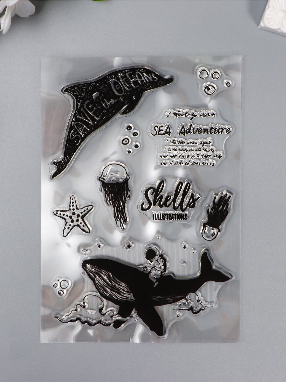 FEYT, Штамп силиконовый "Дельфин, кит и космонавт" для творчества, для скрапбукинга