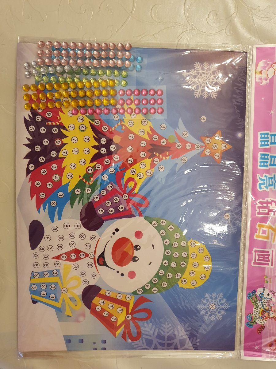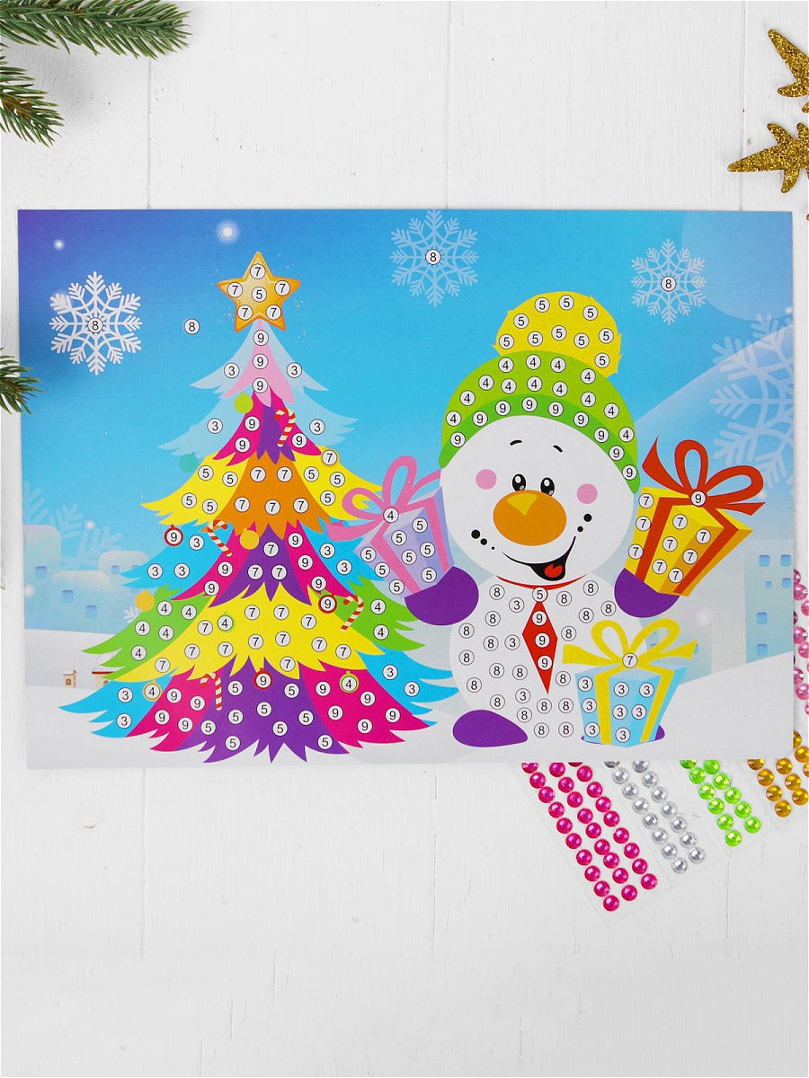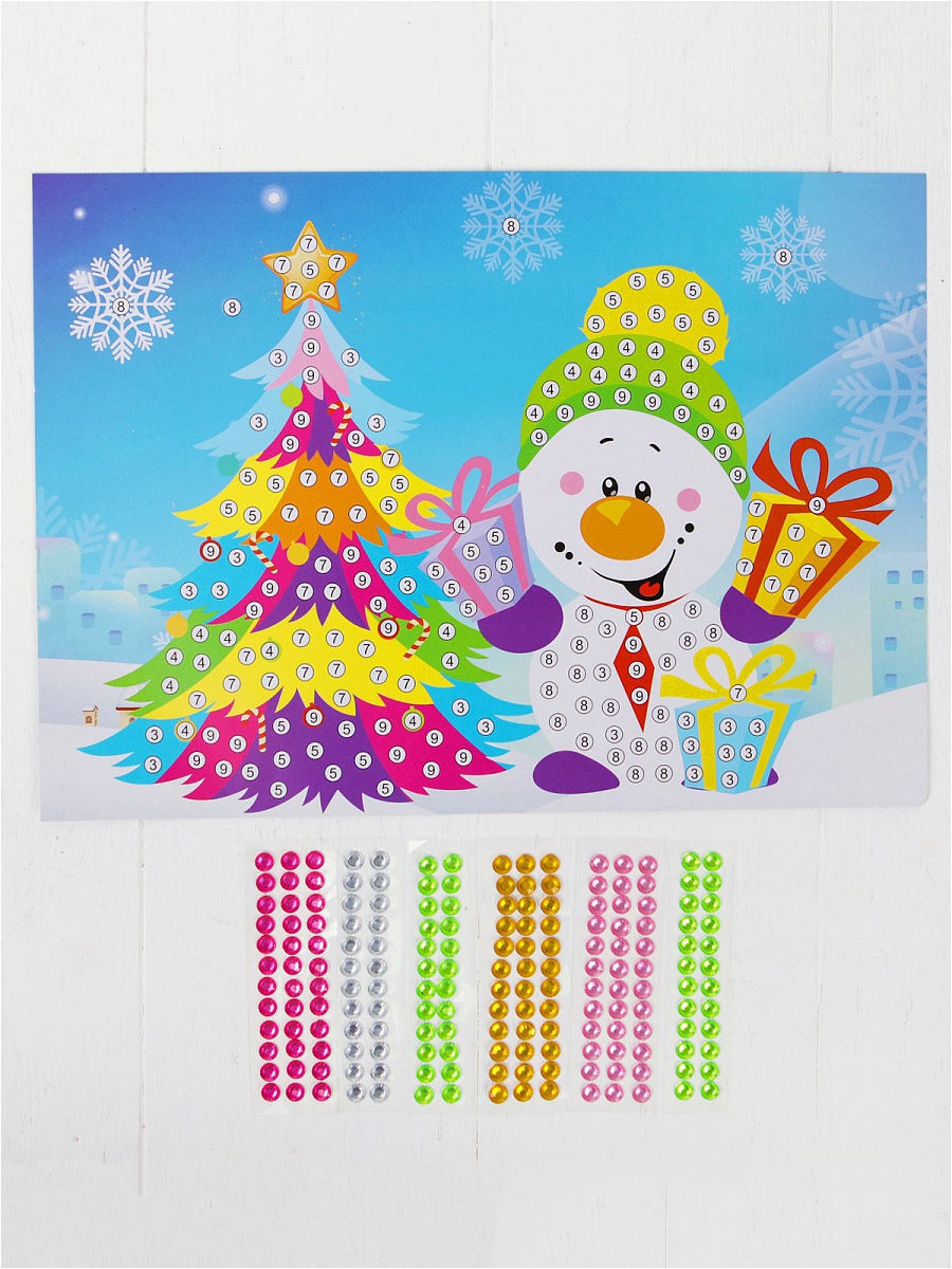 FEYT, Аппликация "Снеговик с елкой" для детей, с круглыми стразами