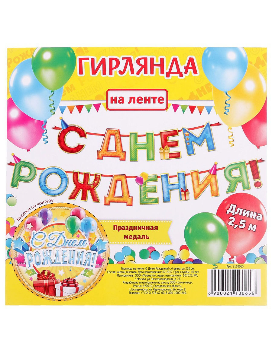 FEYT, Гирлянда на ленте "С Днем Рождения!", длина 250 см