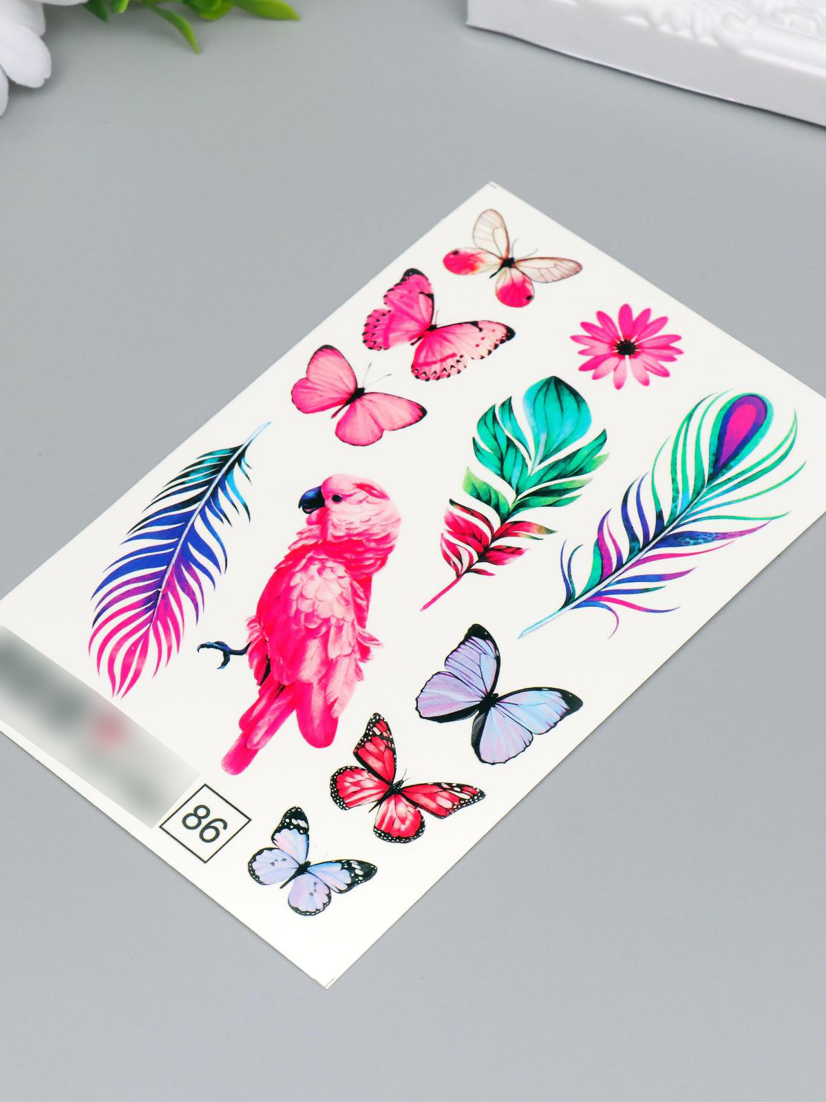 FEYT, Татуировка переводилка "Перья, бабочки", для тела, 10 х 15 см