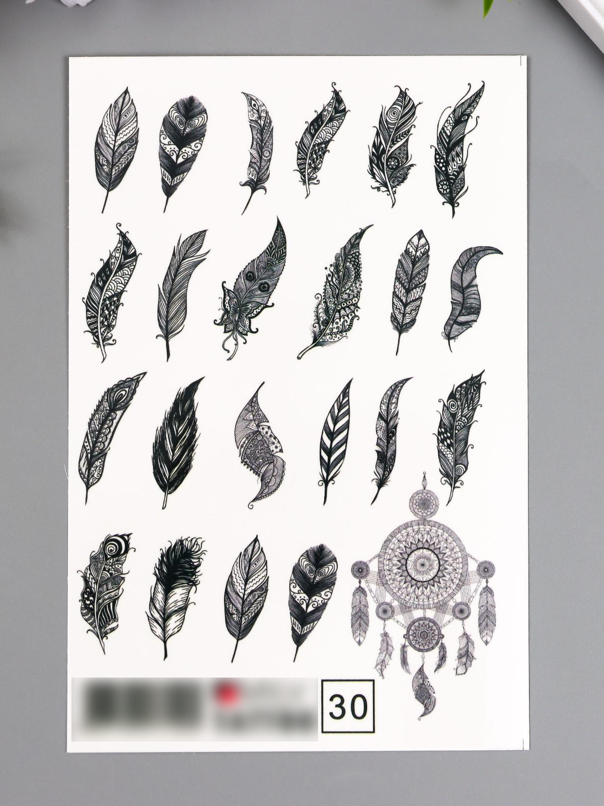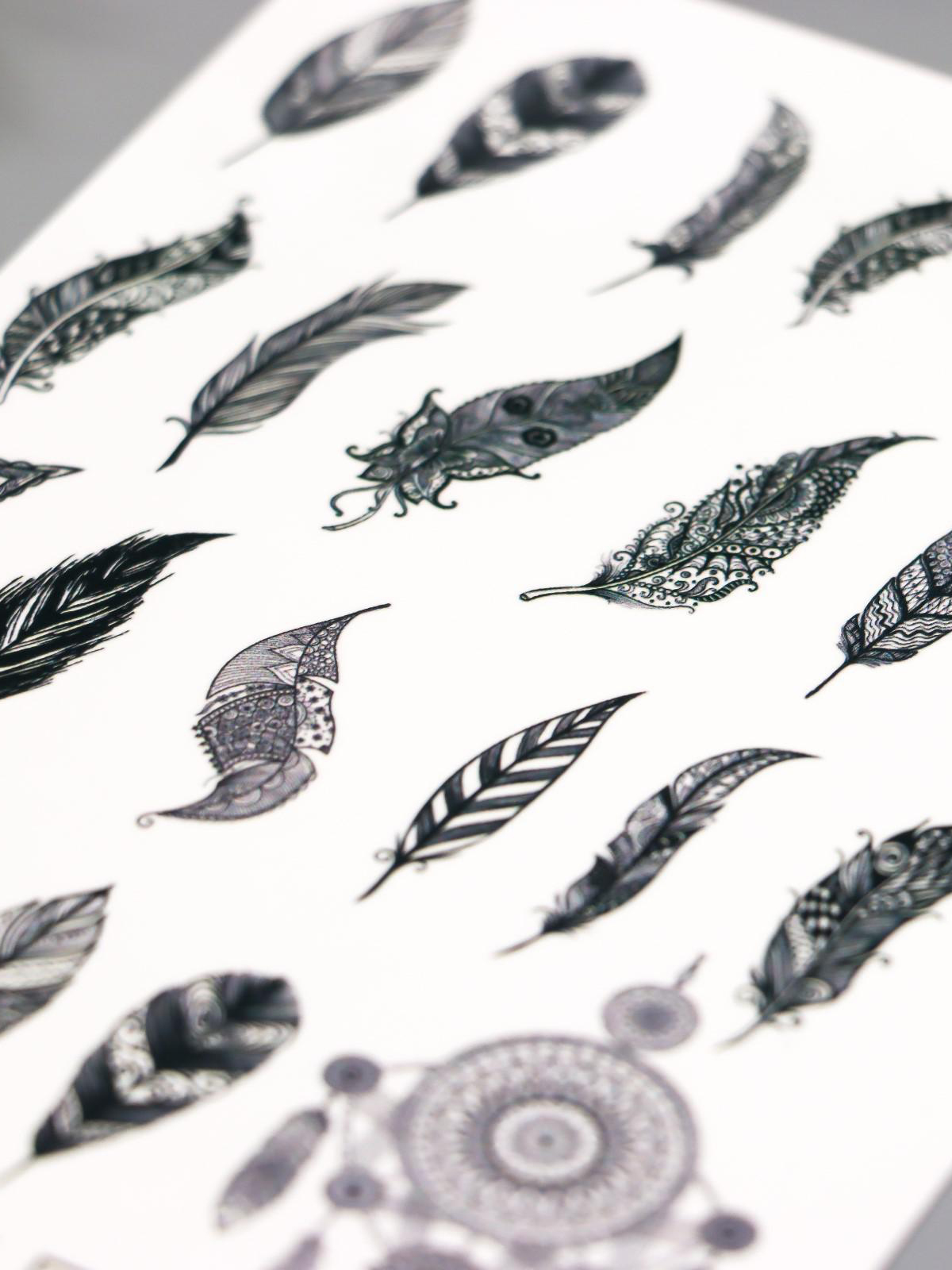 FEYT, Татуировка для тела "Черные перья", 10 х 15 см