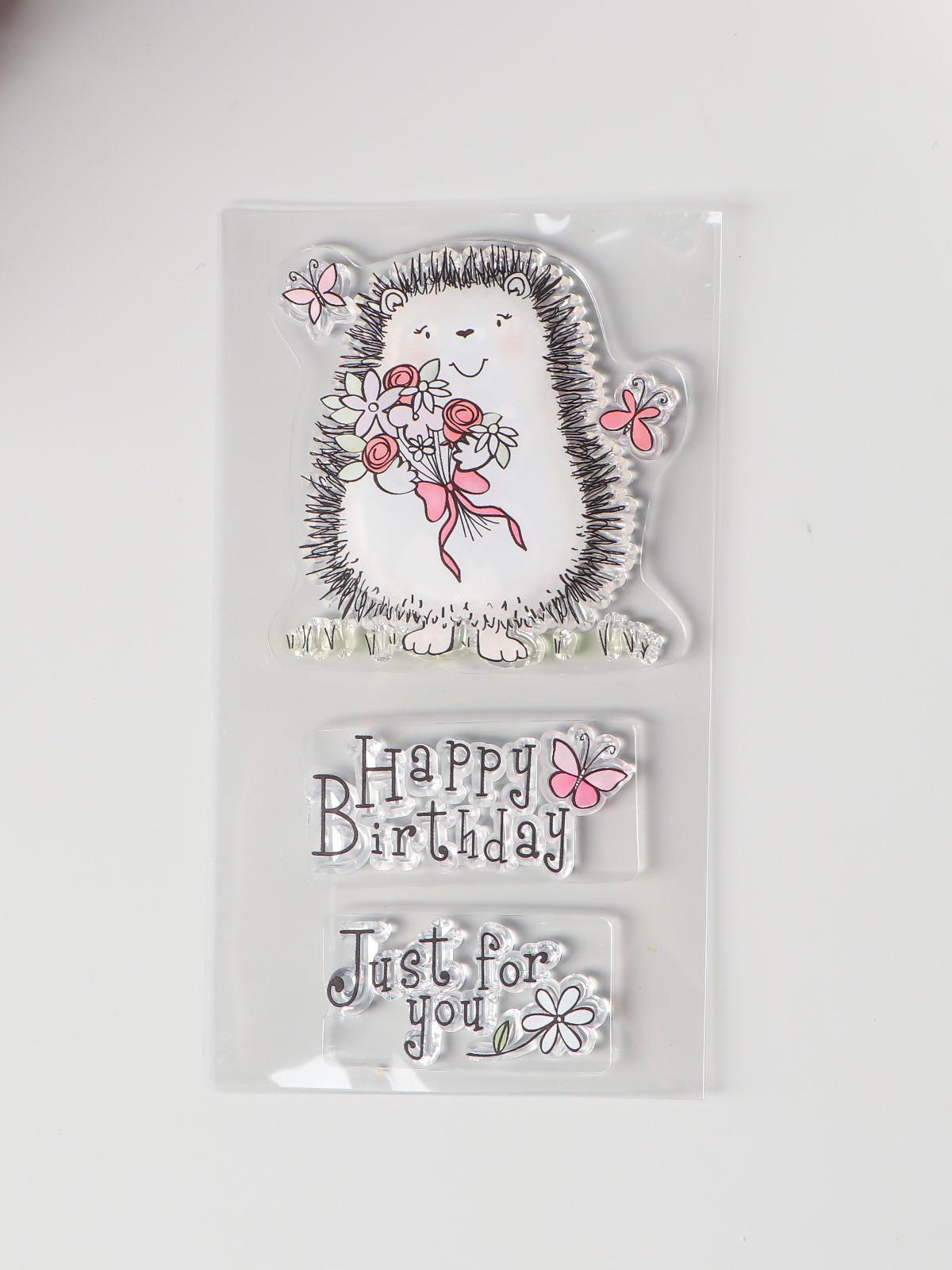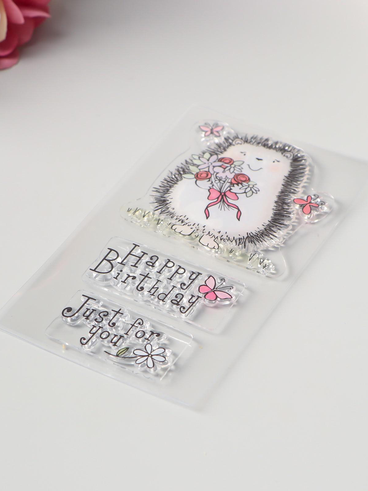 FEYT, Силиконовый штамп для творчества "Ежик и букетик" / Аксессуары для творчества / Скрапбукинг