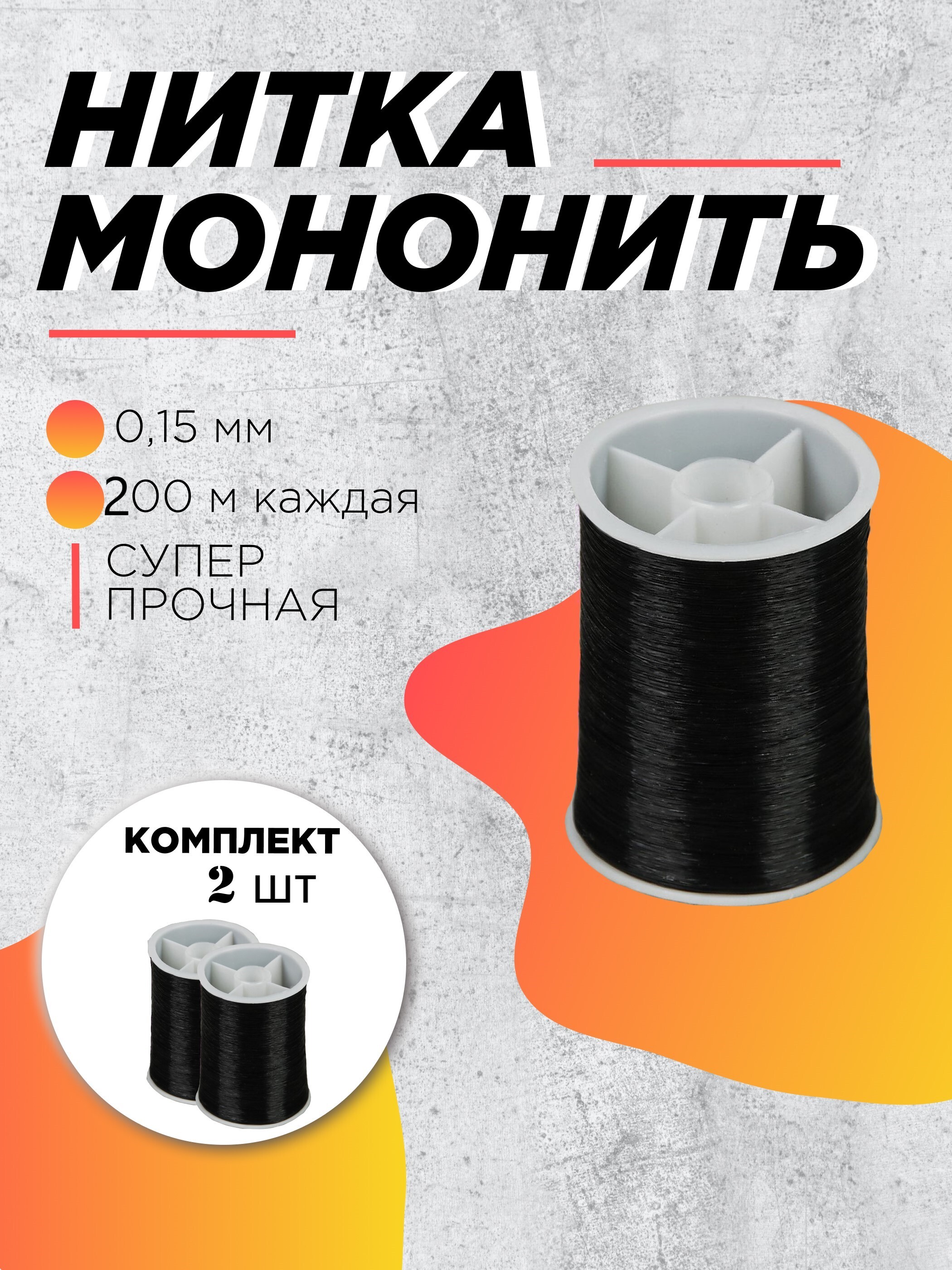 Нитка мононить 0,15 мм, 200 м, черная, 2 катушки