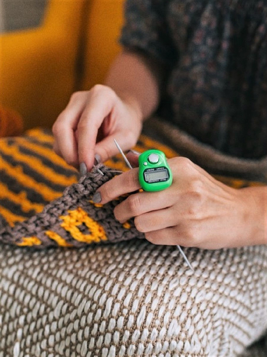 Счётчик рядов электронный для вязания, с ремешком на палец, цвет коричневый