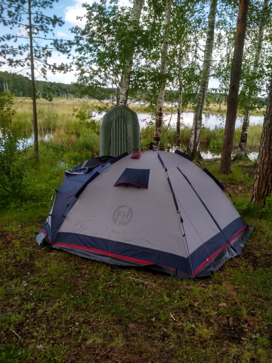Палатка FHM кемпинговая Alioth 4 black-out (Синий/Серый)
