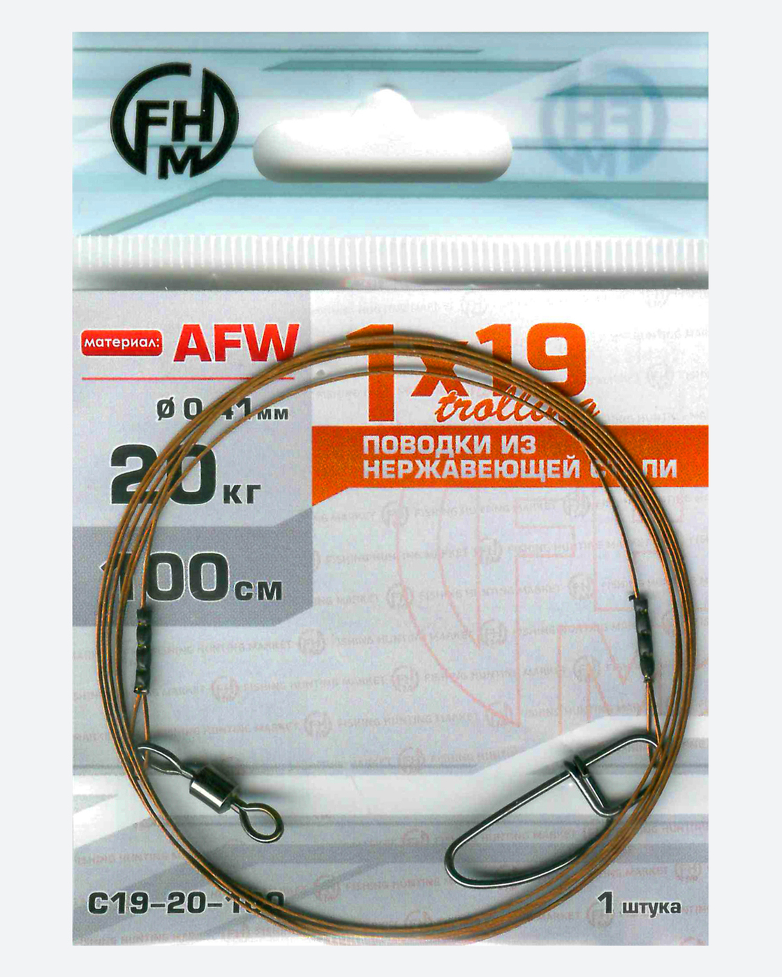 Поводок стальной FHM 1х19 (AFW) 20кг 100см (уп.1шт) Trollihg