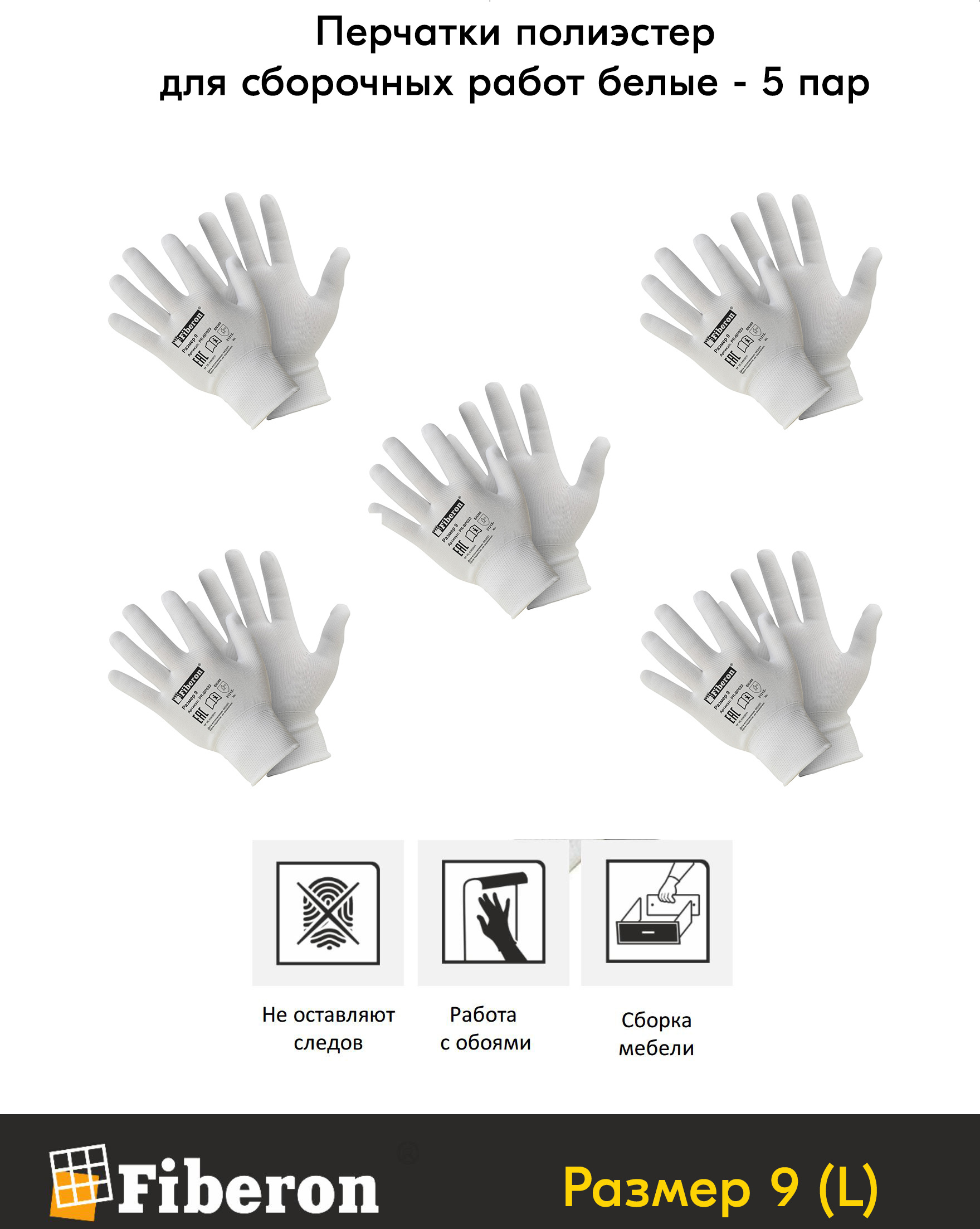 Перчатки ХБ, Перчатки защитные Fiberon Полиэстер, размер: 9 (L), 5 пар пар/уп