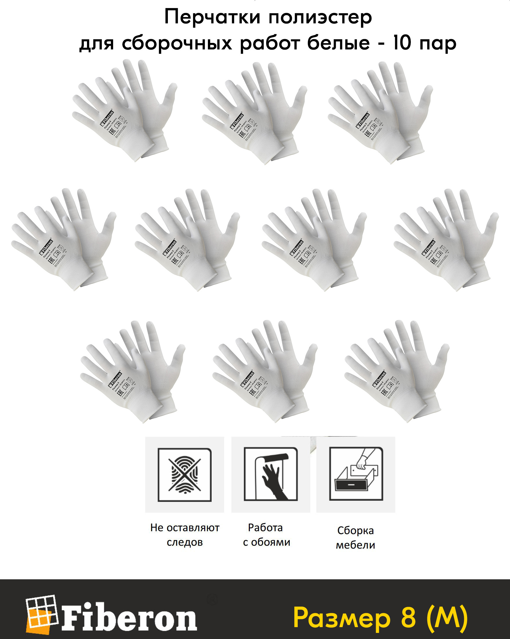 Перчатки защитные, Перчатки ХБ Fiberon Полиэстер, размер: 8 (M), 10 пар пар/уп