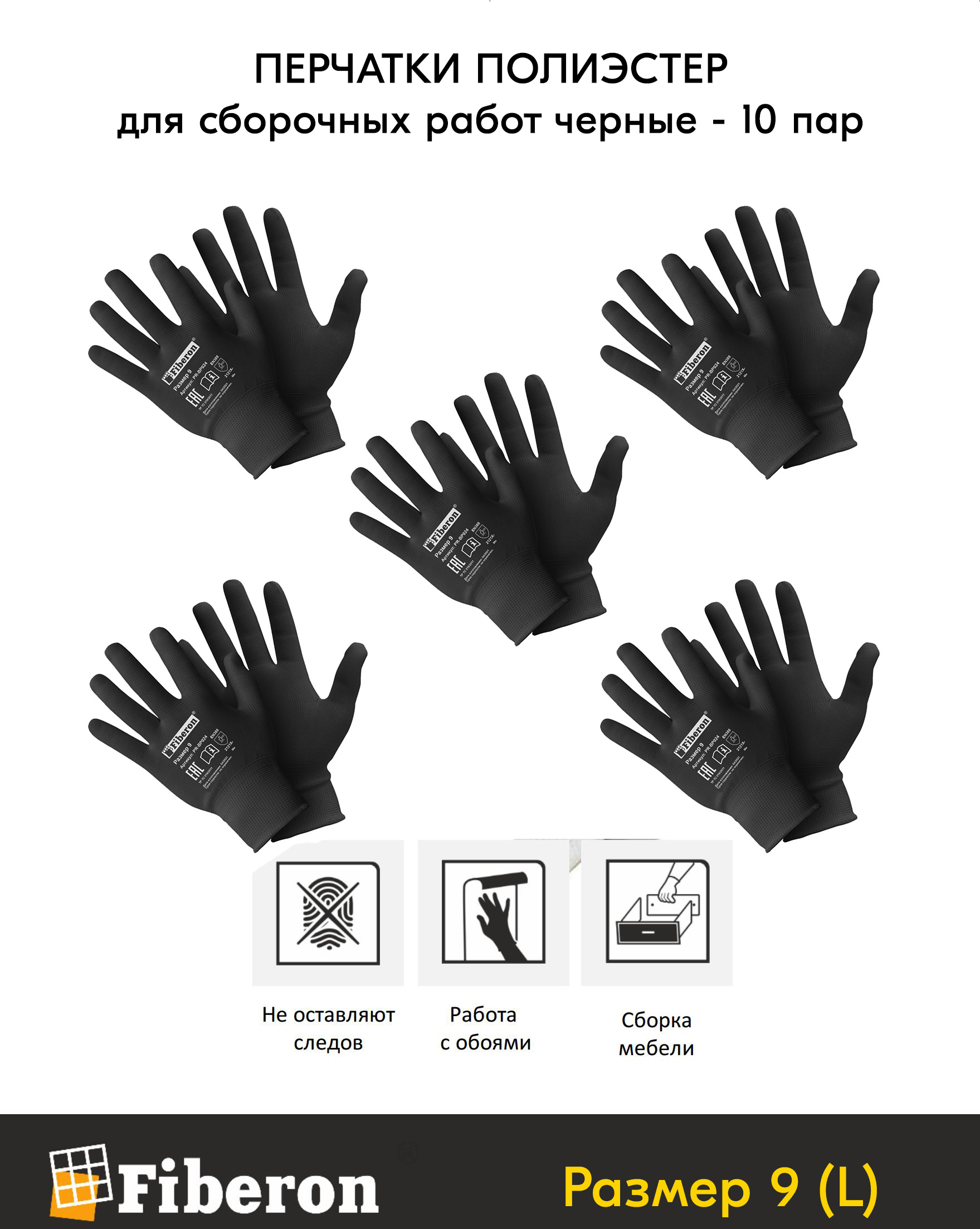 Перчатки ХБ, Перчатки защитные Fiberon Полиэстер, размер: 9 (L), 5 пар