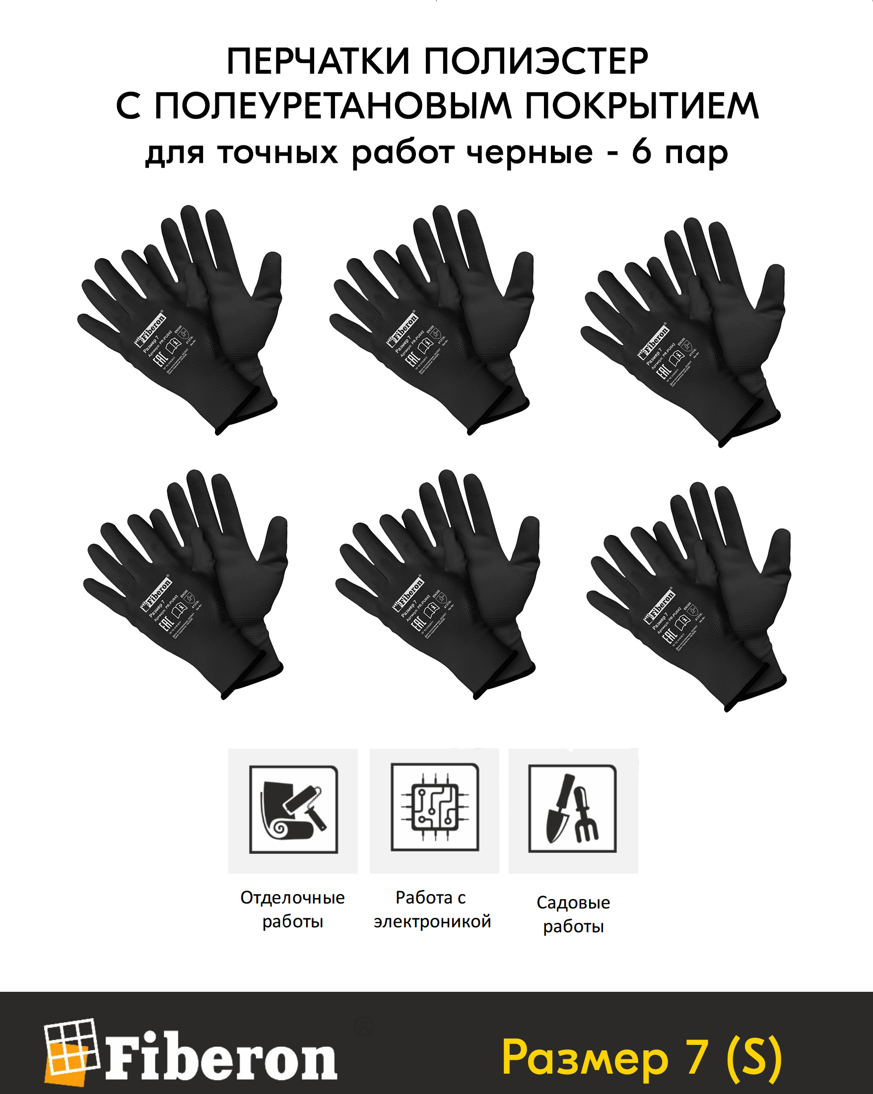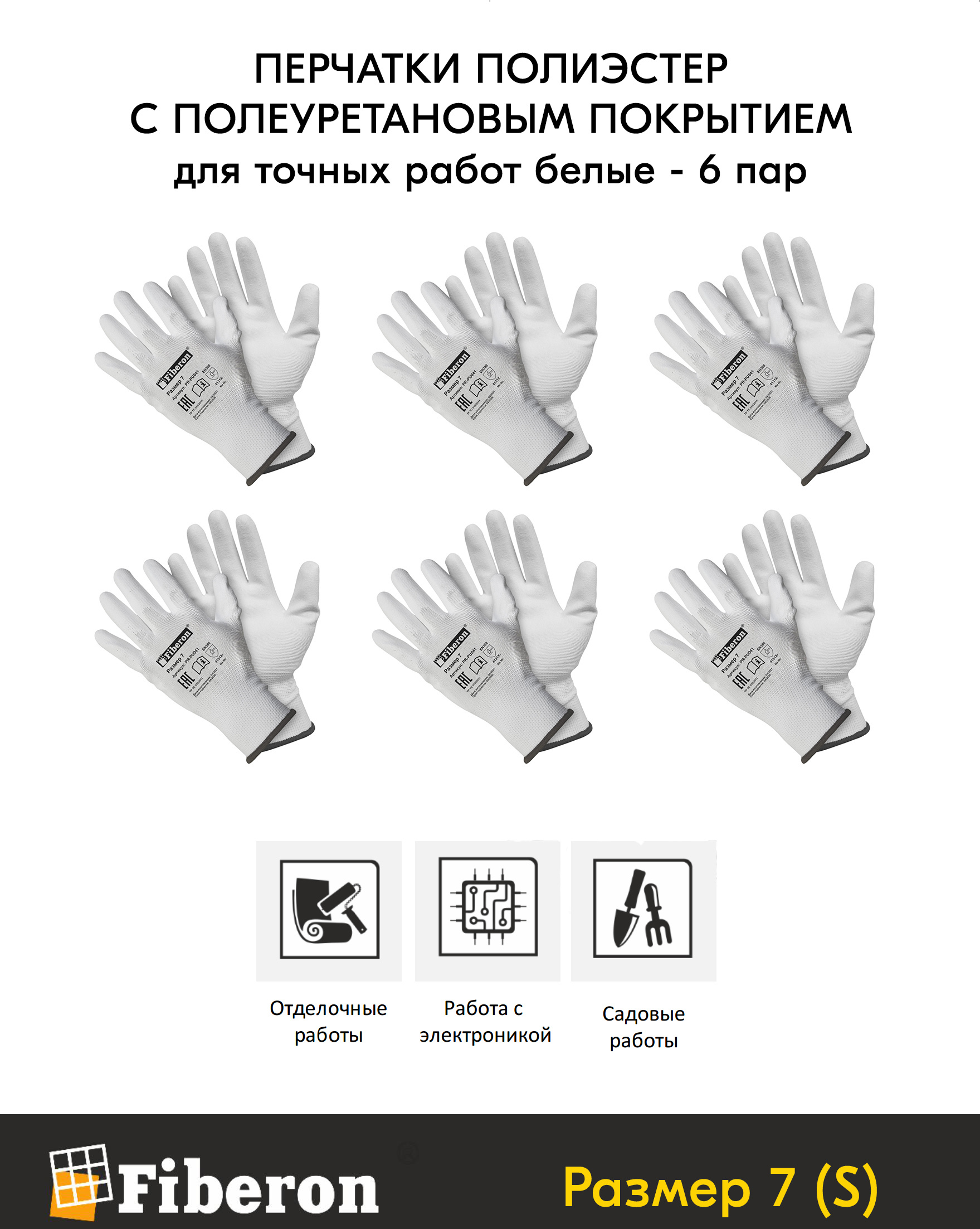 Перчатки ХБ, Перчатки защитные Fiberon Полиэстер c пп, размер: 7 (S), 6 пар пар/уп