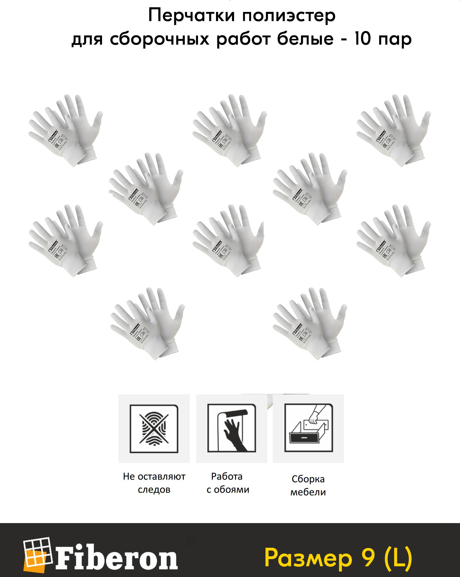 Перчатки ХБ, Перчатки защитные Fiberon Полиэстер, размер: 9 (L), 10 пар