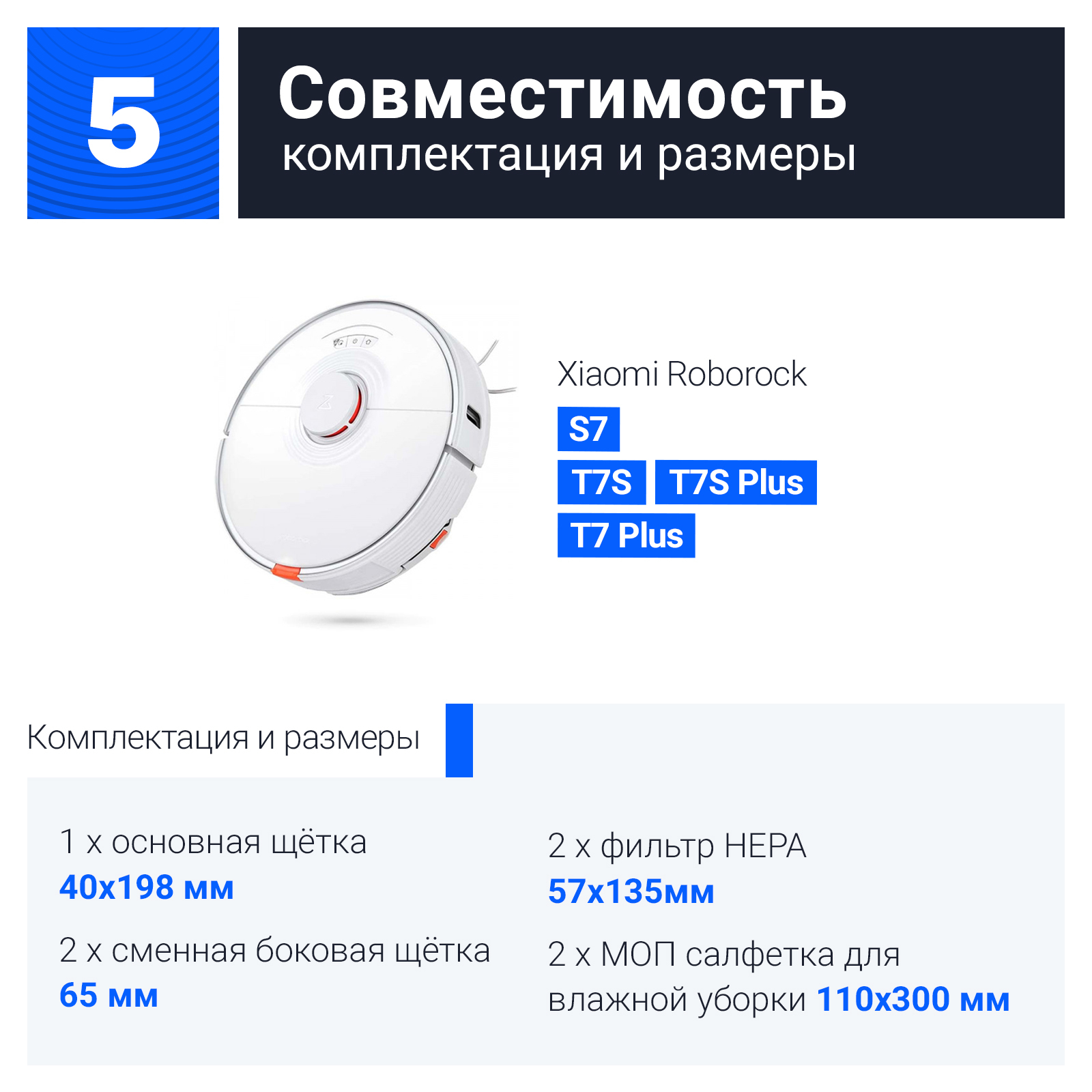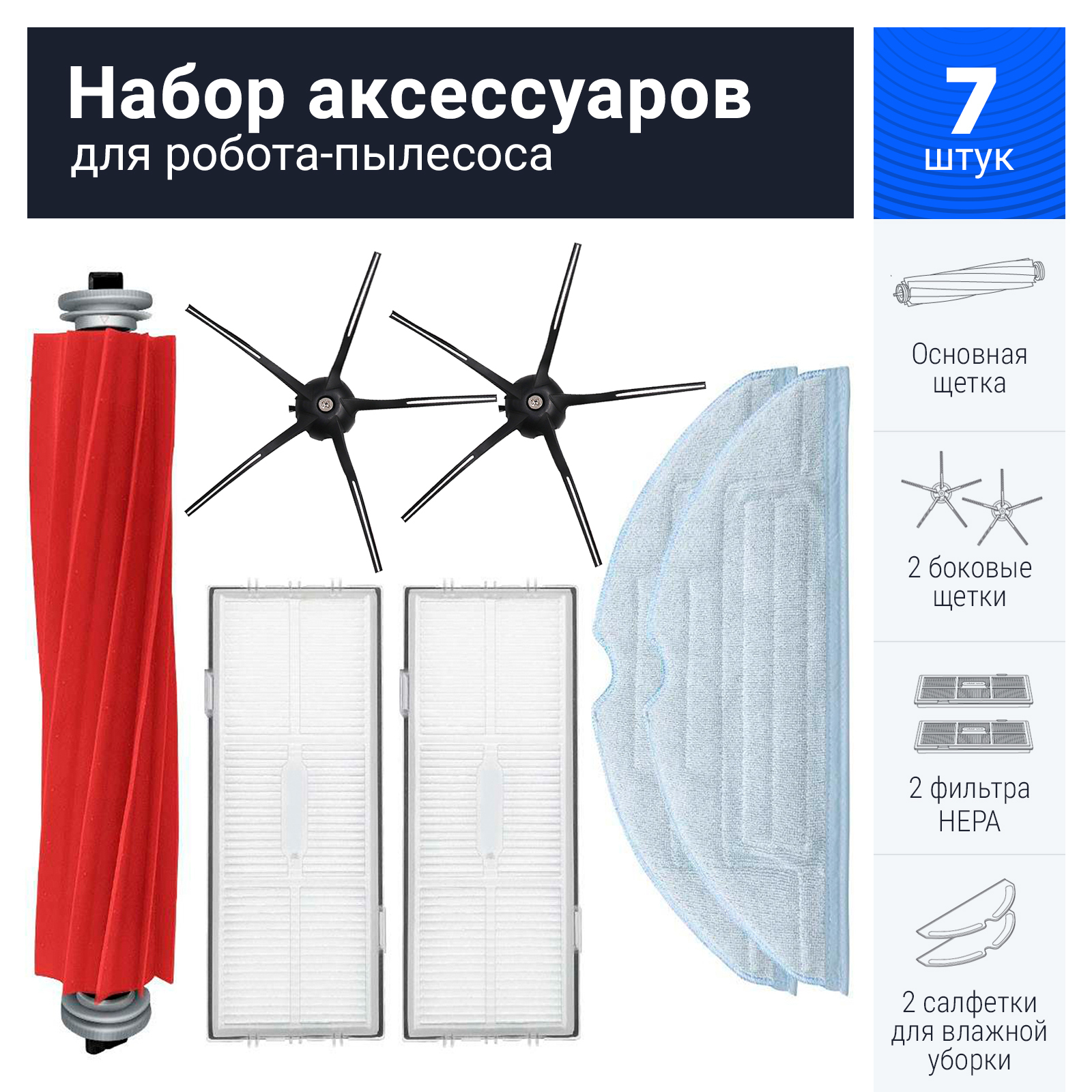 Комплект фильтров и щеток для робот-пылесоса Xiaomi Roborock T7S, T7S plus, T7 plus, S7 Black