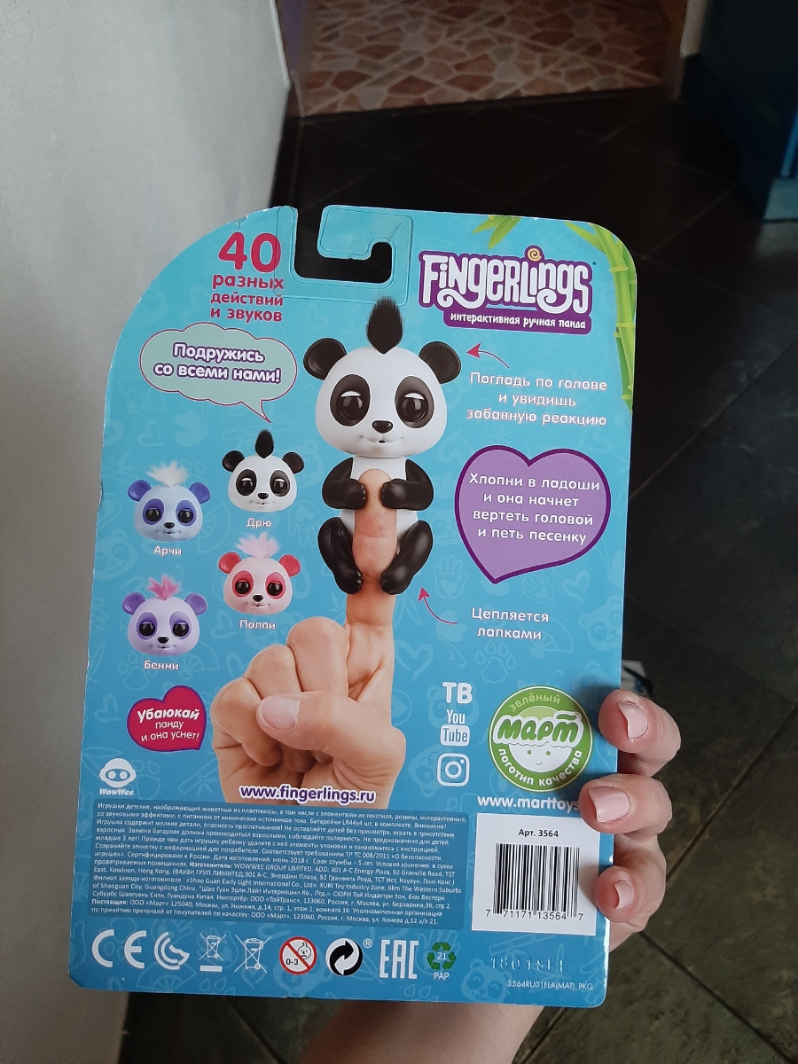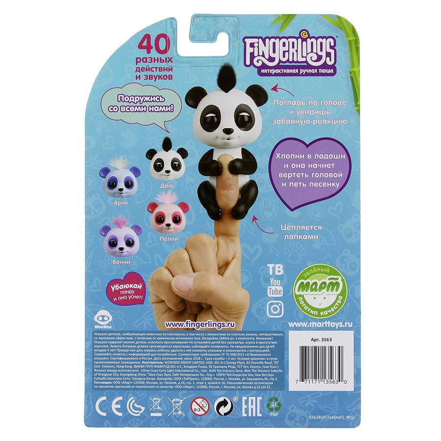 Интерактивная игрушка Fingerlings Панда Арчи, 12 см, 40 действий и звуков!