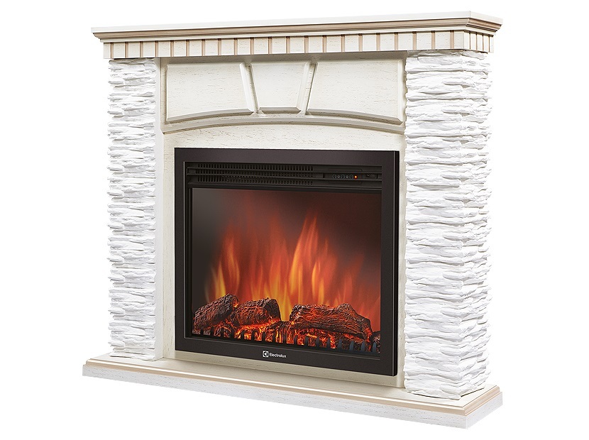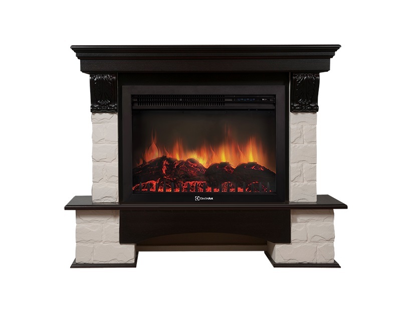 Портал Firelight Torre 30S камень белый, шпон темный дуб