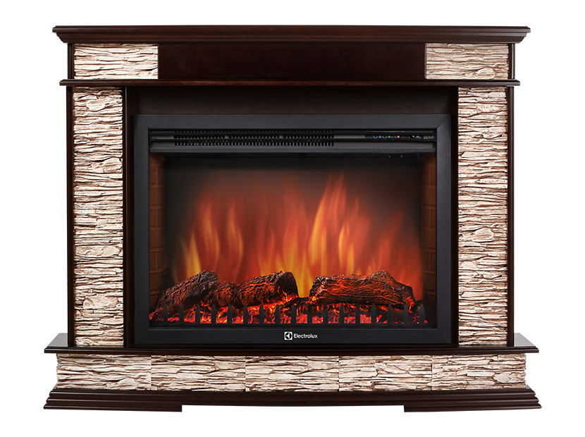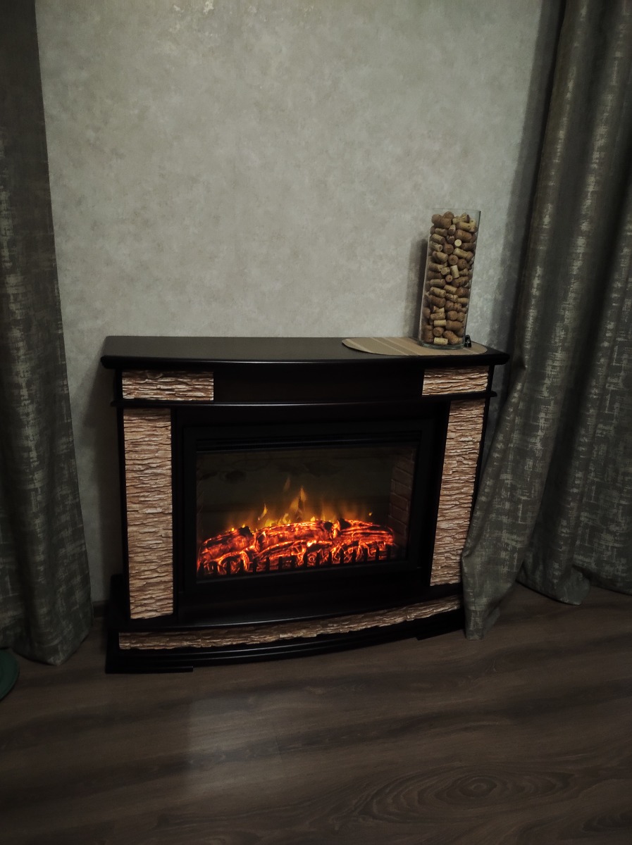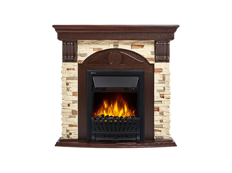 Портал Firelight Torre Classic камень сланец натуральный, шпон темный дуб