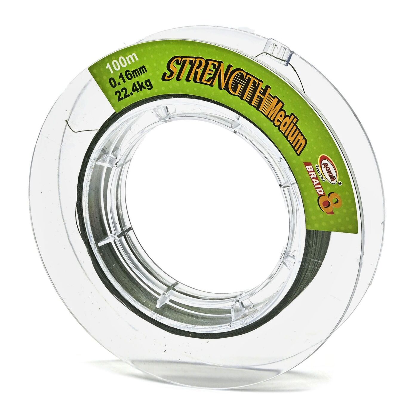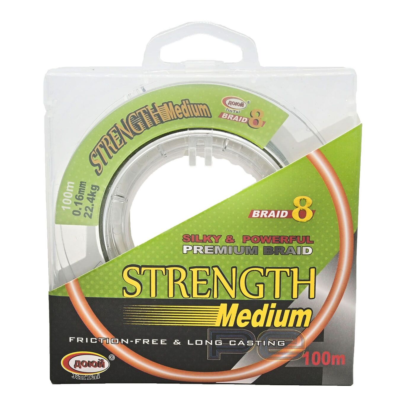 Плетеный шнур STRENGTH MEDIUM 0,16мм 100м, болотного цвета, 8 жил.