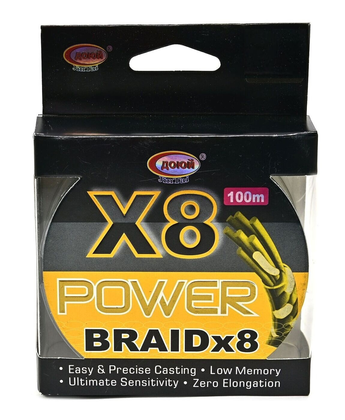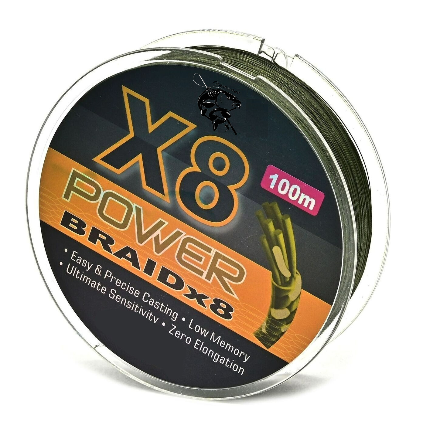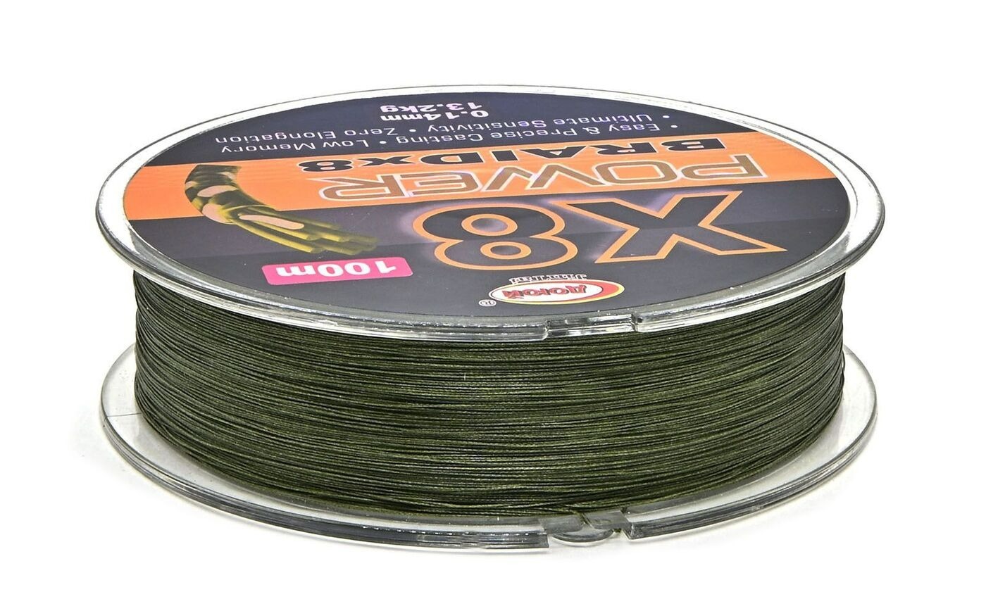 Плетеный шнур POWER BRAIDх8, 0,16мм 100 м, болотный цвет, 8 жил.