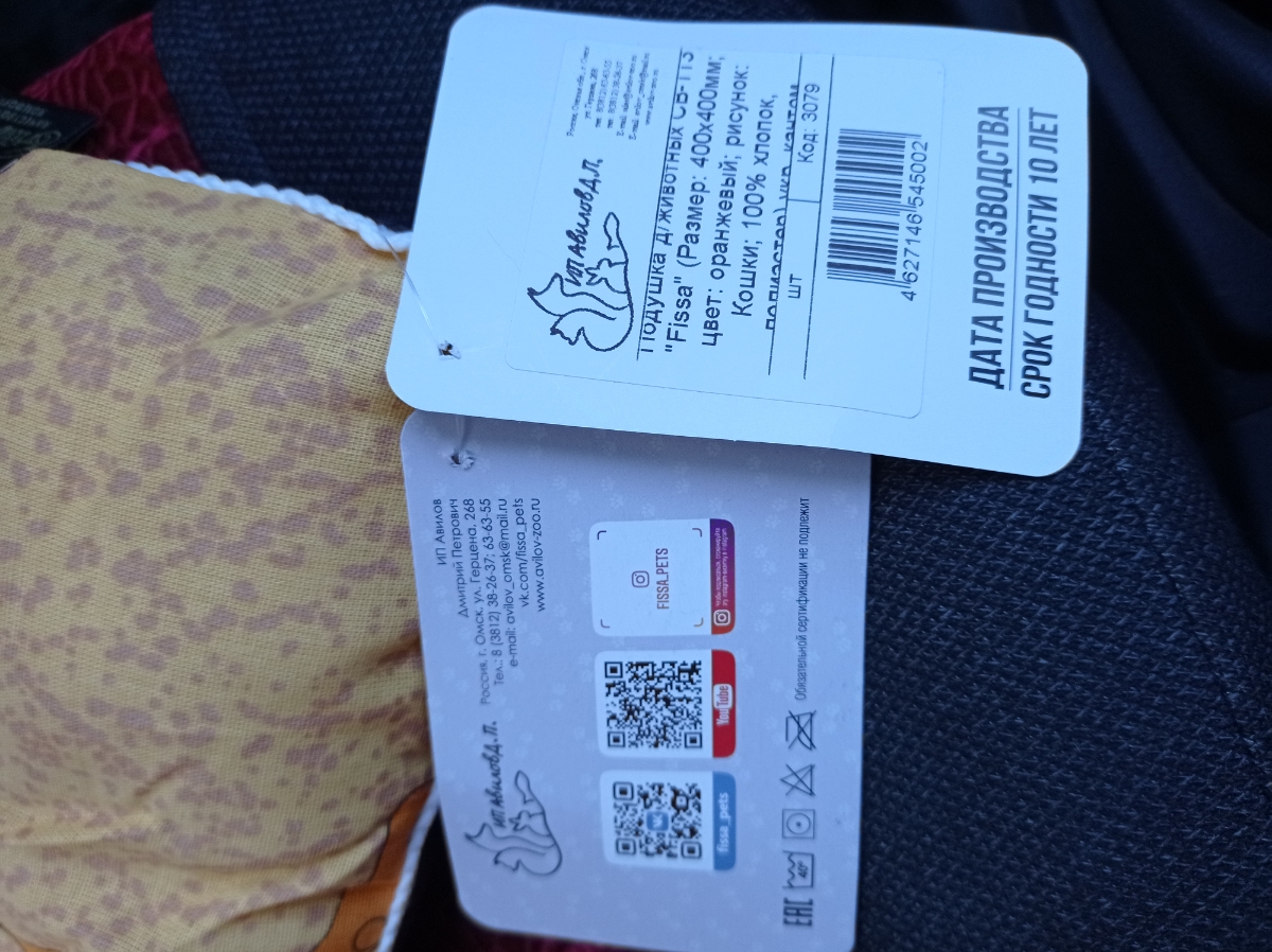 Подушка для животных FISSA, коллекция "Кошки", модель СВ-113, 40х40 см (подушечка для кошек и маленьких собачек)